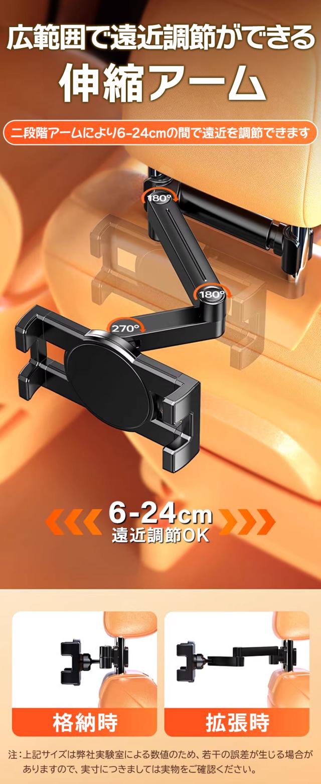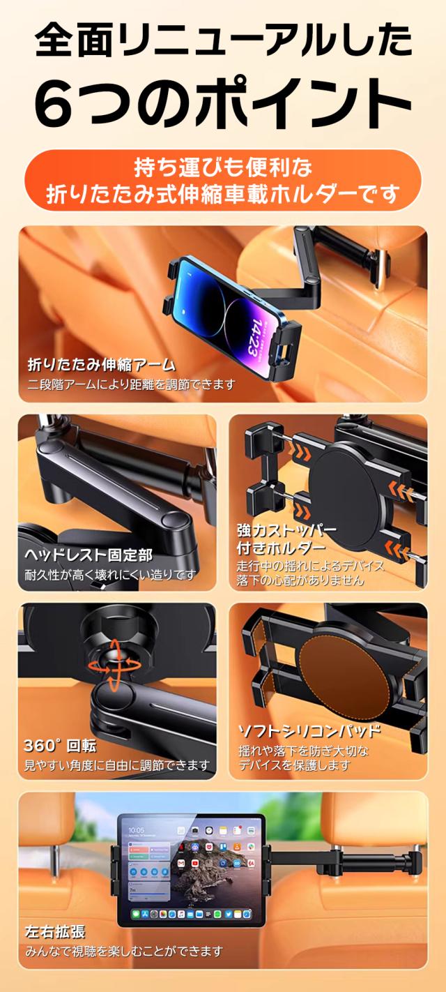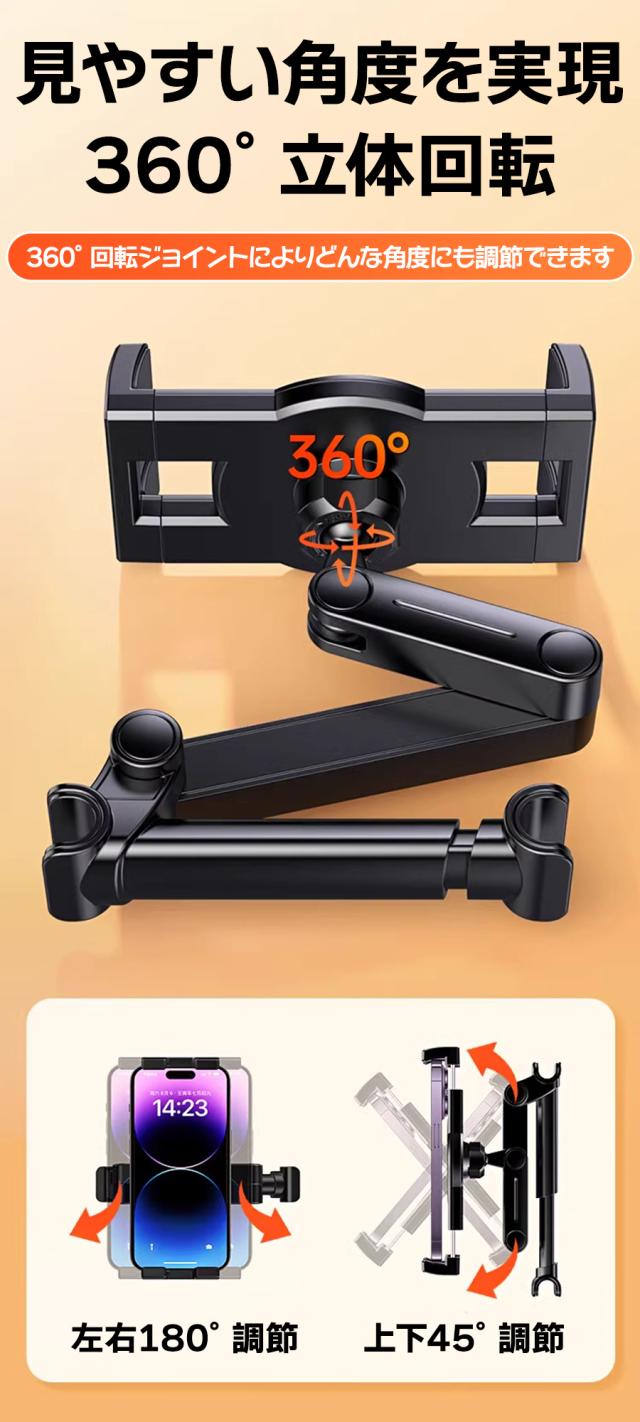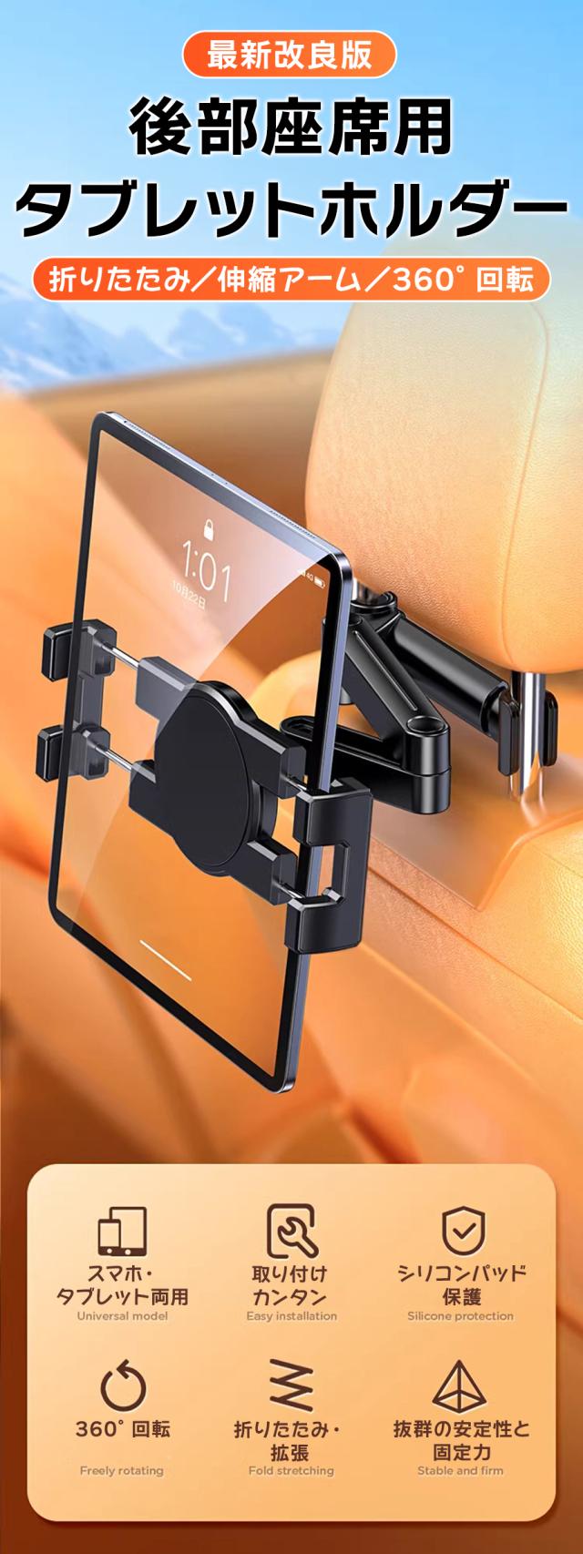 最新改良版 後部座席用タブレットホルダー 折りたたみ/伸縮アーム/360°回転 |