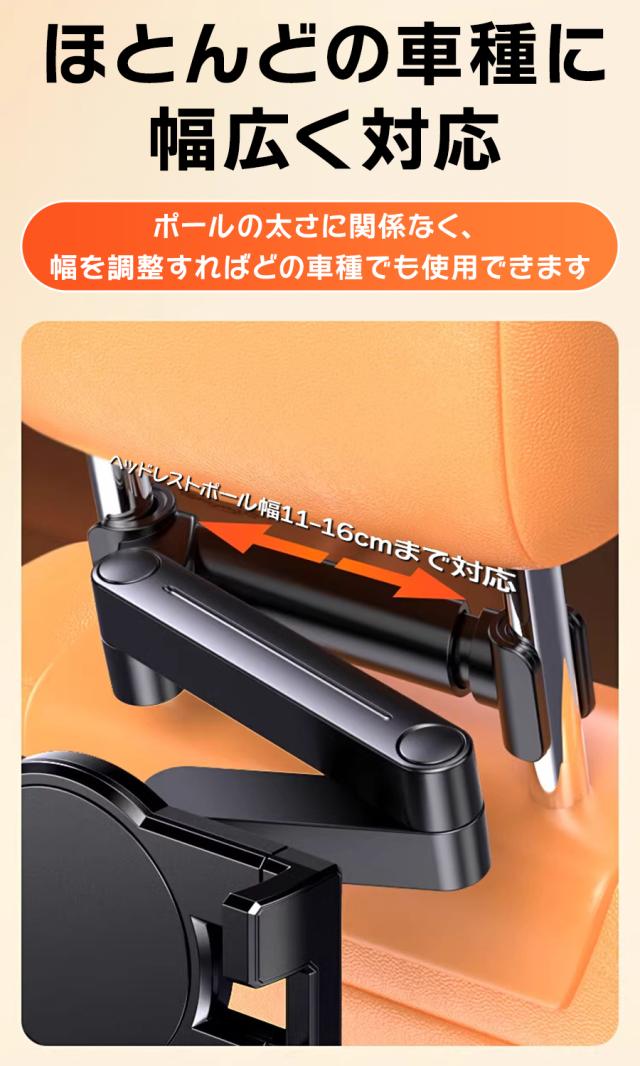 ●ほとんどの車種に幅広く対応 (ヘッドレストポール幅11-16cmまで対応) |