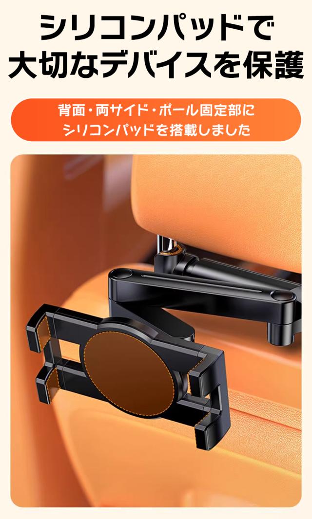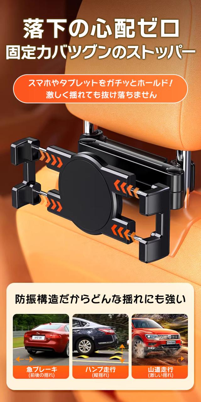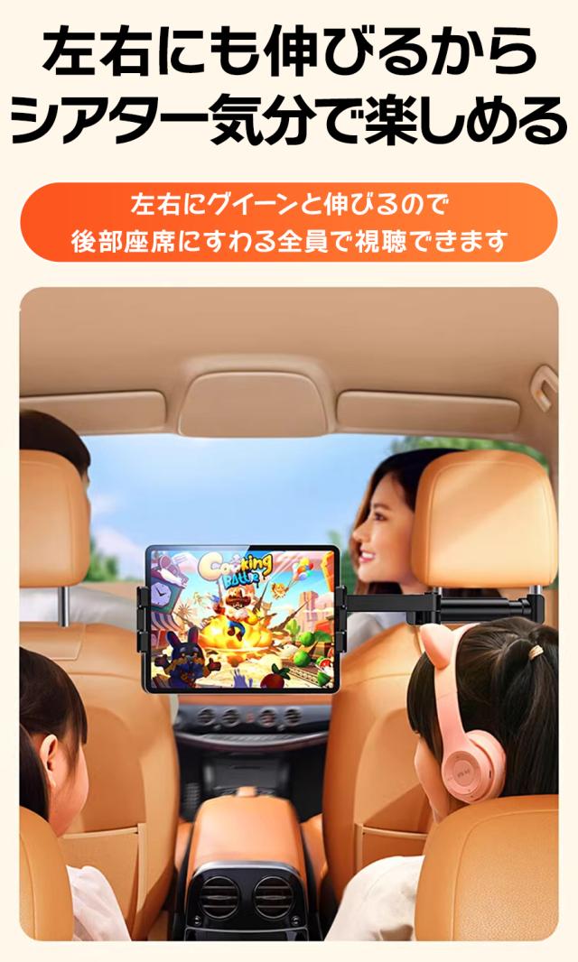 タブレットホルダー 車載ホルダー 車 後部座席 ヘッドレスト 車載 スマホホルダー マウントホルダー 車用 iPad iPhone android スマホスタンド タブレットスタンド 強力 簡単 安全 事故防止 360度回転 ドライブ カー用品 動画鑑賞 iPad Pro Air iPad4 mini switch