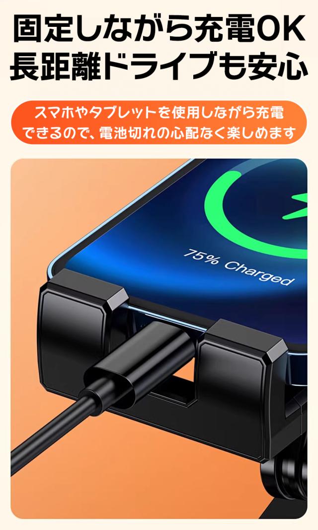| スマホやタブレットを使用しながら充電できるので、電池切れの心配なく楽しめます |