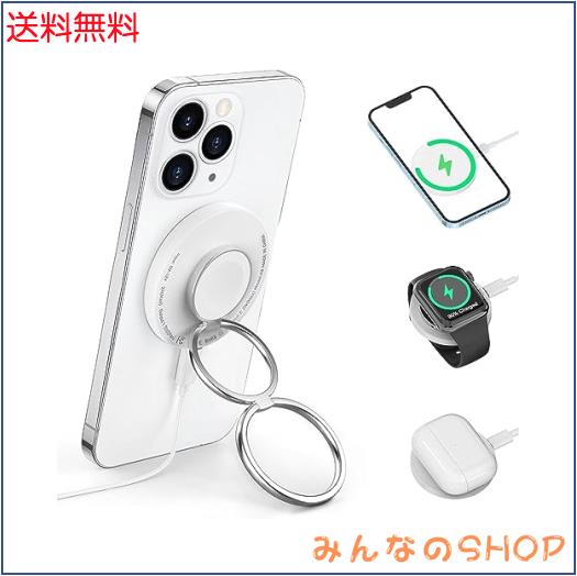 【充電保護、携帯便利】最新の磁気コイルを採用して、従来の充電器と比べて20%性能が向上しました、約2-3時間で充満できます。異物識別、電流保護、過熱保護等優れた機能を搭載して、急速充電の同時に、全方位にあなたとお使いスマホを守ります。サイズは6*0.6cmだけで持ち運ぶもとても便利です。【強化版】HOUOA 3in1 magsafe充電器 最新のダブルリング ワイヤレス充電器 アップルウォッチ 充電器iPhone/Apple Watch/Airpodsに対応 1