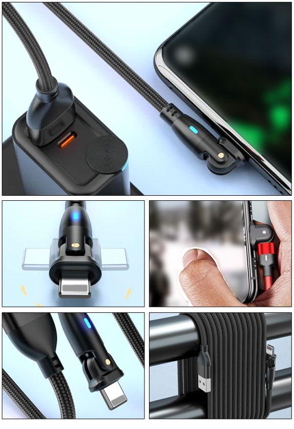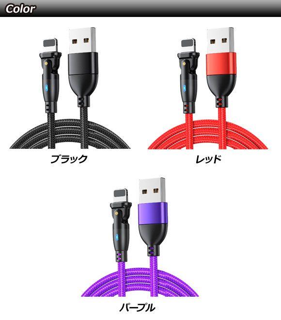 USB-A/iOS系端子 変換ケーブル パープル 1m コネクタ回転式 オス-オス LEDライト付き AP-UJ1024-PU-1M