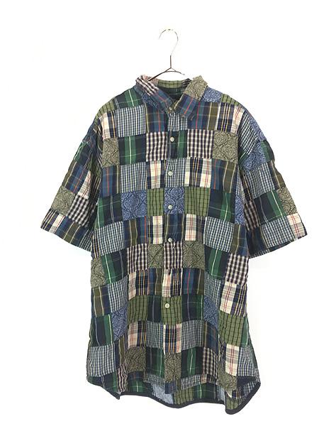 古着 00s GAP バンダナ柄 マルチ チェック パッチワーク 半袖 コットン シャツ XL