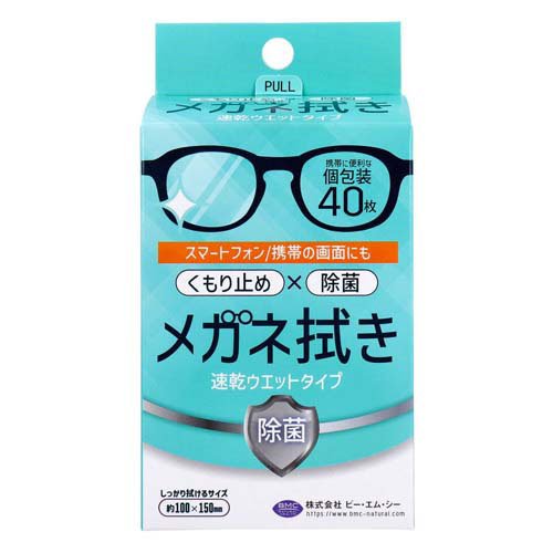 メガネ拭き 速乾ウエットタイプ 個包装(40枚入)[眼鏡クリーナー]