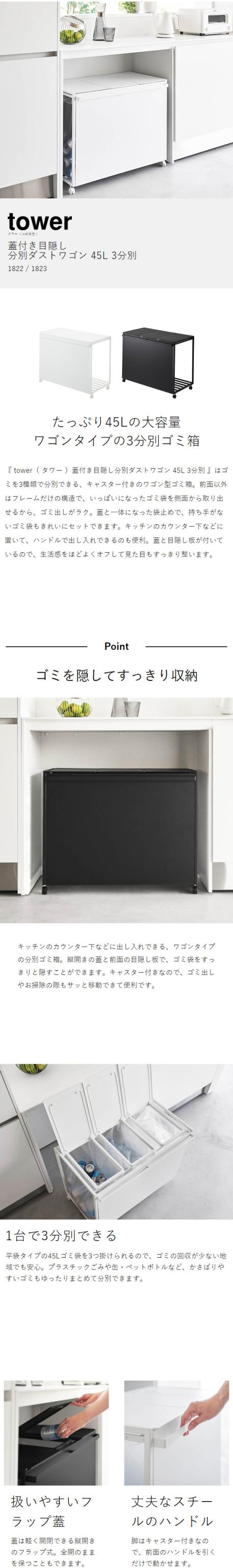 [ 蓋付き目隠し分別ダストワゴン タワー 45L 3分別 ]山崎実業 tower ゴミ箱 分別 ふた付き ごみ箱 キャスター付き ダストボックス 分別ゴミ箱 ゴミ袋ホルダー ゴミ袋 フタ おしゃれ yamazaki 公式 ブラック ホワイト 1822 1823【送料無料】