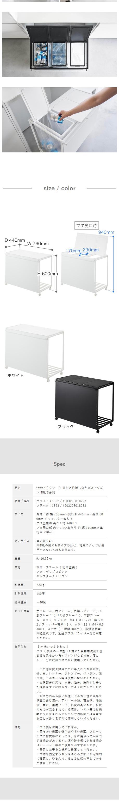 [ 蓋付き目隠し分別ダストワゴン タワー 45L 3分別 ]