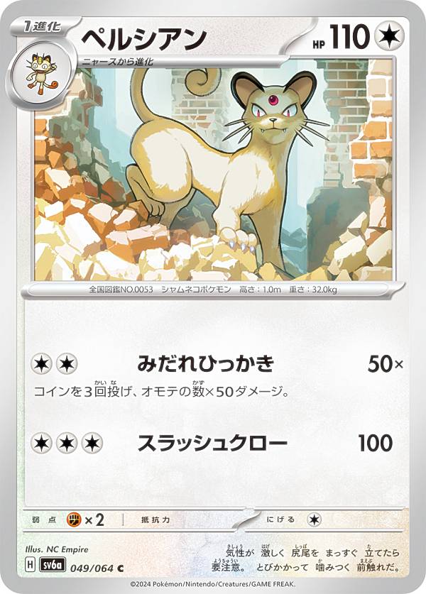 ポケモンカードゲーム SV6a 049/064 ペルシアン 無 (C コモン) 強化拡張パック ナイトワンダラー