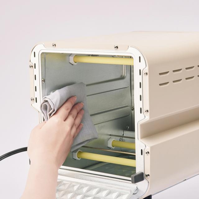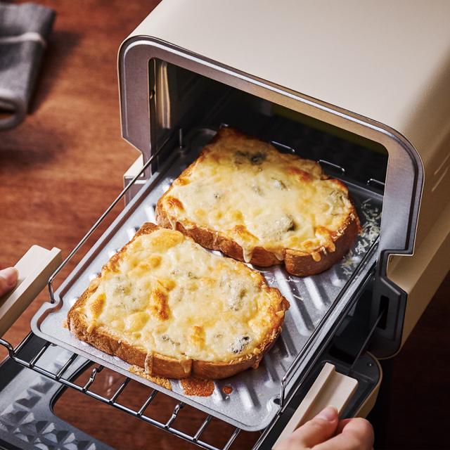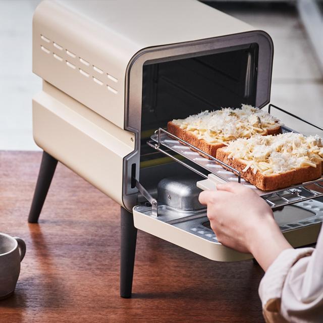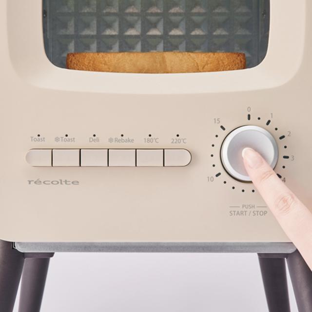 スライドラックで出し入れがストレスフリーに。 コロンと丸みを帯びたレトロで愛らしいデザインとは裏腹に、パンやピザ、グラタンなど、料理を美味しく仕上げる実力派のオーブントースター。幅は約27cmとコンパクトな分、奥行きがあるのでパンを2枚並べて焼くことができます。こちらのオーブントースターには、レコルトオリジナル「スライドラック方式*」を採用しており、料理を取り出すときの火傷の心配をすることなく、ストレスフリーに出し入れが可能になりました。 *実用新案登録第 1389366号 | ラックがそのまま取り出せて使いやすさ◎