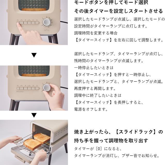 縦方向に並べられる、奥行きのあるトースター 幅約27cm、奥行き約35cmの縦長のオーブントースター。一般的な幅が広いものではないので、ちょっとしたスペースにスッと入ります。 | 直感的な操作ができるボタン×ダイヤル方式