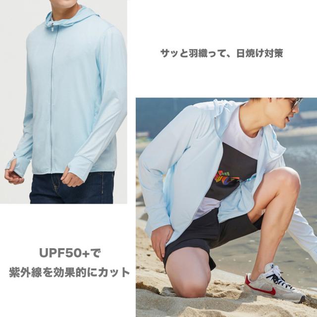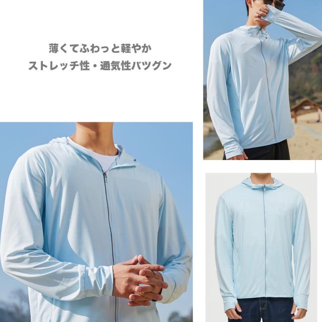 期間限定 SALE 接触冷感 軽量 UVカットパーカー メンズ ラッシュガード 薄い 軽い #PK526c1 長袖 日焼け止め ウェア トップス ライトアウター M便