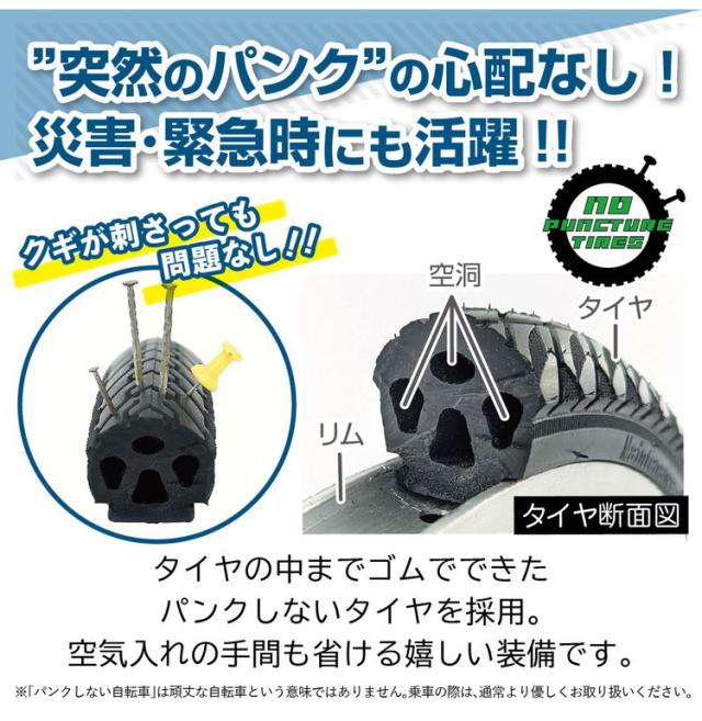 パンクの心配もなく、空気入れの手間も省けて嬉しい1台!