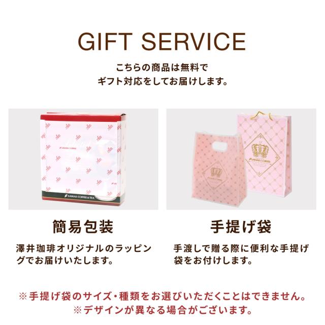 澤井珈琲(さわいこーひー)では、お客様のお家に商品が届き、箱を開けた瞬間。そして、トレードマークの赤いコーヒー袋の封を開けた時に鮮度抜群の「香り高さ」と、飲んだときの「味わい」に感動して頂けるように、レギュラーコーヒーはご注文を頂いてから焙煎をして焼きたてのコーヒー、コーヒー豆、珈琲、珈琲豆をお届けをしている焼き立て珈琲専門店です。お客様に「美味しい」と言って喜んで頂く事が私たちの喜びと思ってます。「美味しいコーヒーをお届けしたい」と想い続けて生まれたこだわりの味を、どうぞ、この機会にお楽しみくださいませ。澤井珈琲では、コーヒー豆は挽き方がご選択いただけます。珈琲豆を挽く事をお楽しみ頂ける『豆のまま』や、私共の専用の特注サイズの大型のミルで挽いて、コーヒー粉の状態にしてお届けする方法がございます。中挽き、細挽き、粗挽き、荒挽きなど様々な挽き方がございますが、私共がお薦めする『店長のおすすめ挽き』にて、そのコーヒーに合った一番美味しいと思える挽き方に挽いてお届けします。東京の銀座にも実店舗を構え、都内では浅草やスカイツリーのあるソラマチにも出店。「鳥取のコーヒー屋さん」とも呼ばれてますが、空気が綺麗で自然豊かな鳥取県に焙煎工場を構え、隣接する島根県の松江市や出雲市にも実店舗がございます。顔の見えないネット通販ですが、全国11店舗を展開する安心安全な澤井珈琲は、特徴的な「赤いコーヒー袋」に入れて、全国の珈琲好きにお選び頂いてます。よく間違えられる名前として、沢井珈琲、沢井コーヒー、澤井珈琲店、澤井珈琲本店、さわいこーひー、サワイコーヒーなどがございますが、正式名称は澤井珈琲となります。