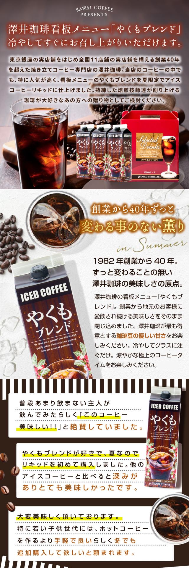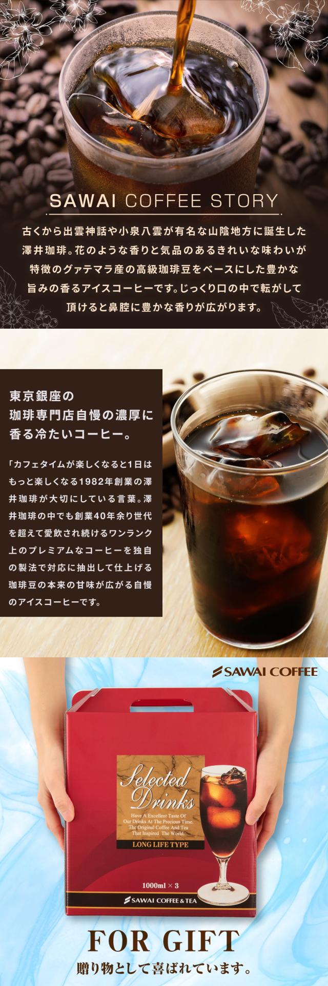 | 商品名 | 澤井珈琲 やくもブレンド 無糖アイスコーヒーリキッド 3本ギフト |