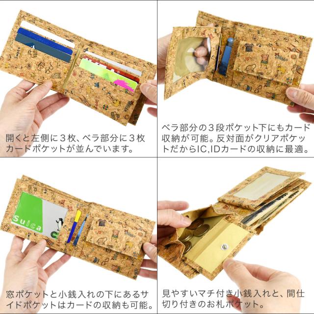 コルク 二つ折り財布 パスケース付き 【メール便対応可】 中ベラ 窓付 免許証入れ 定期入れ ハーフウォレット 軽量 コンパクト ナチュラル 天然素材 木材 樹皮 サステナブル カード入れ 札入れ 小銭入れ POP UNICORK ユニコルク 二つ折り 財布 レディース SALE