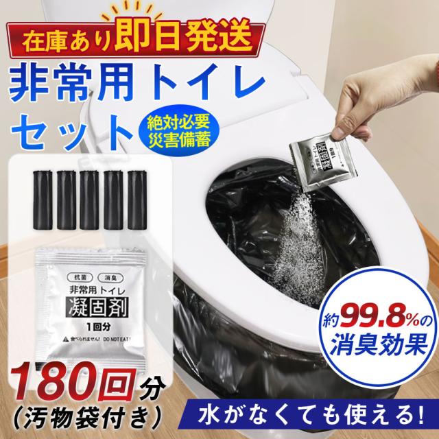 即納!簡易トイレ 非常用トイレセット 凝固剤 180回分 携帯トイレ 小便 大便 抗菌 消臭 防災グッズ 防災セット 災害用 登山 断水