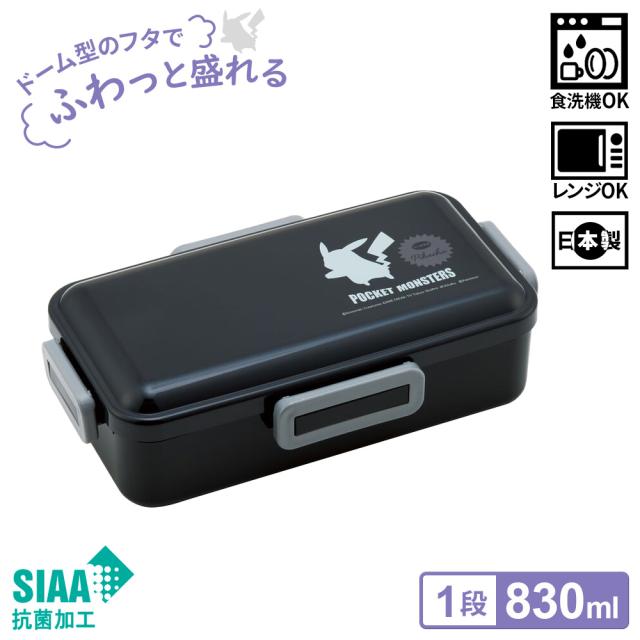 ふわっと弁当箱 POKEMON (830ml) PFLB8AG | お弁当箱 ポケモン 1段 仕切り付き ランチボックス モノトーン 大人 食洗機OK 日本製 弁当 男の子 ランチBOX ドーム型 もれにくい レンジOK ポケットモンスター