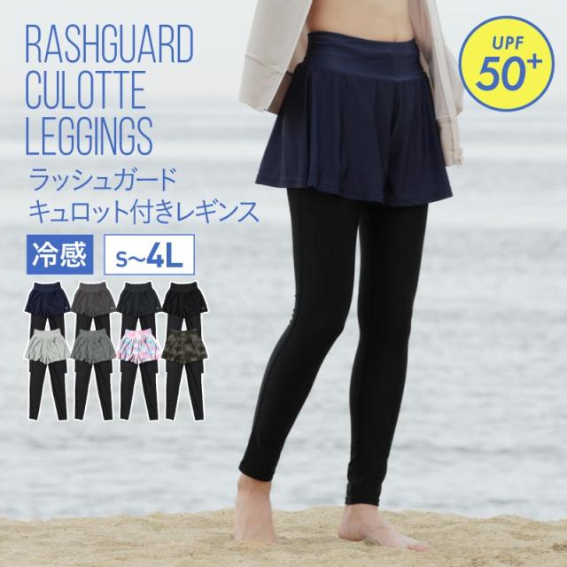 ラッシュガード レディース レギンス キュロットスカート付き 一体型 UVカット UPF50+ 10分丈 海 プール 水遊び 川 キャンプ BBQ レジャー ヨガ 伸縮 通気性 涼しい 接触冷感 体型カバー 日焼け防止 ケガ防止 水着 海水浴 ICEPARDAL IR-9800