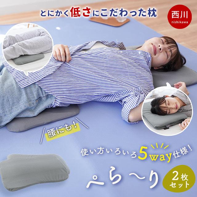 西川 低反発 低さにこだわった 枕 ぺらーり 2枚組 安眠工房 やわらか 敬老の日 50×30cm 高さ約2.5cm 低反発ウレタン 肩口フィット 高さ調整 多用途【sskt】【tt】