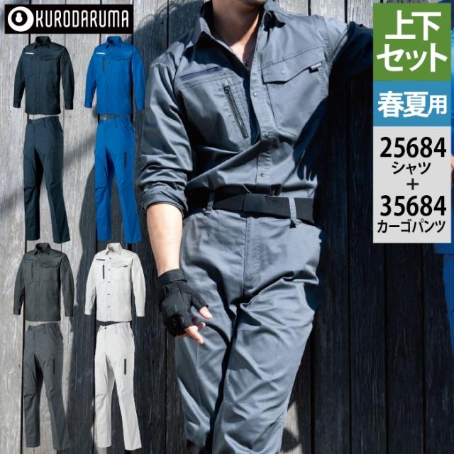 クロダルマ 作業服 上下セット 25684 長袖シャツS-3L と 35684 カーゴパンツ(ノータック) SS-3L 作業着 作業ズボン 春夏用