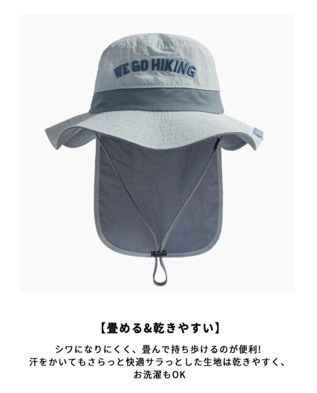 | 可愛らしいカラーとばっちりの機能性が嬉しい! 首元日よけ&あご紐付きでサイズ調整もできる万能ハット 頭囲46-52cm 【ストラップ付】風での吹き飛ばし防止に! 顎紐も調整できるので飛んでいく心配がない!アウトドアでも安心して使えます! 【広めのツバ】日差しをしっかりガードしてくれて日焼け対策にもなるので、お出かけにびったり! 【首までしっかり日よけ対策】頭への直射日光を防ぐだけでなく、首筋まで日よけのタレでしっかりガード。子どもの首筋は皮膚が薄く、日焼けをするとジリジリ痛くなる部分。日よけで首の後ろを覆うことで、うっかり焼けを防止しながら熱中症対策も叶います。 【畳める&乾きやすい】シワになりにくく、畳んで持ち歩けるのが便利! 汗をかいてもさらっと快適♪ サラっとした生地は乾きやすく、お洗濯もOK◎ 【メッシュ素材で通気性◎】横部分は切替メッシュ仕様!熱がこもりにくく、蒸れない帽子は元気なお子様の味方! 【サイズ調整OK】頭の後ろについたアジャスターで、サイズ調整が可能です。ワンサイズ大きめを選んで、サイズ調整していただくとより長く使えます。 【可愛いデザイン】シンプルで「男女兼用」デザイン、どんなお洋服でも合わせやすい!フロントの刺?もポイントです。ユニセックスデザインで兄弟でお揃いもOK! | |