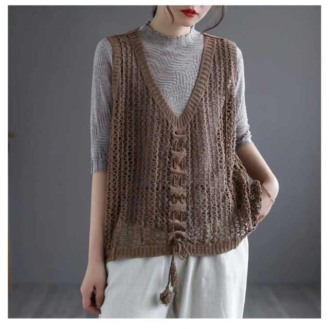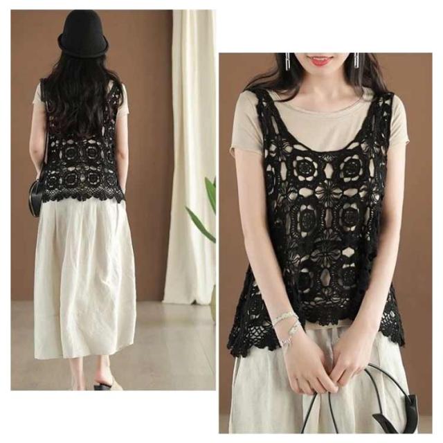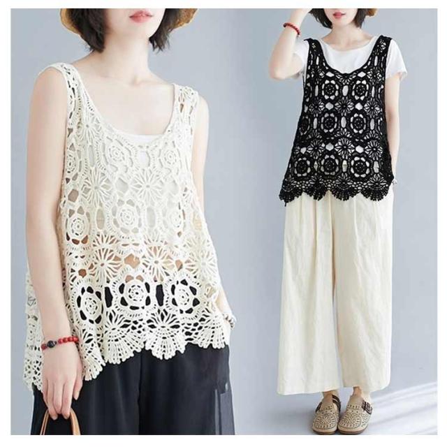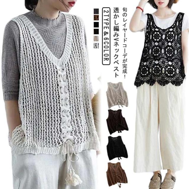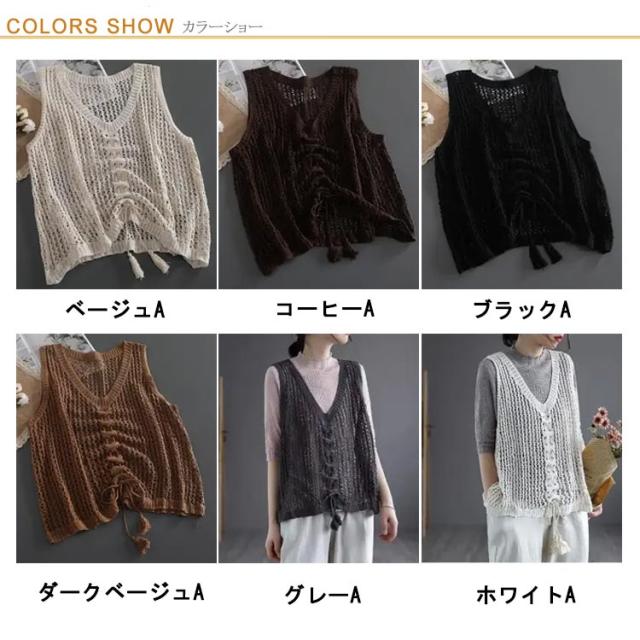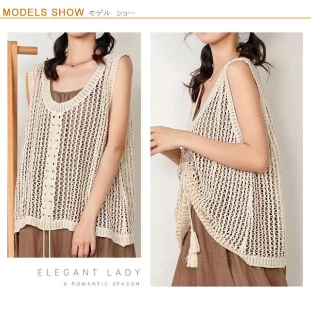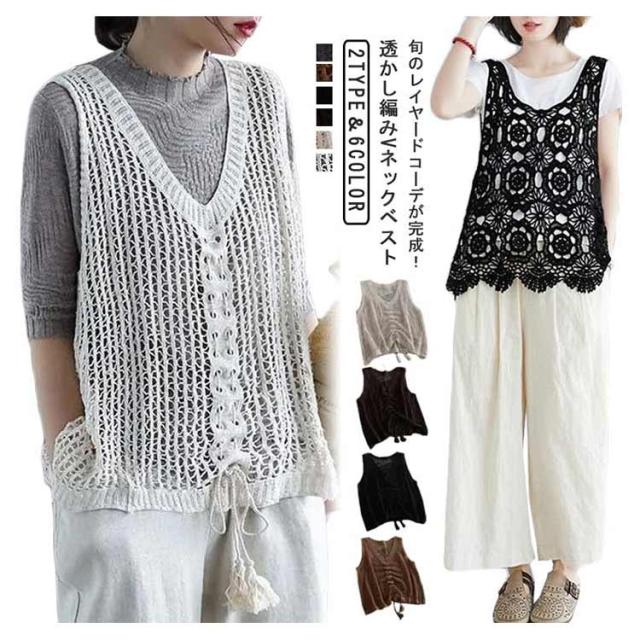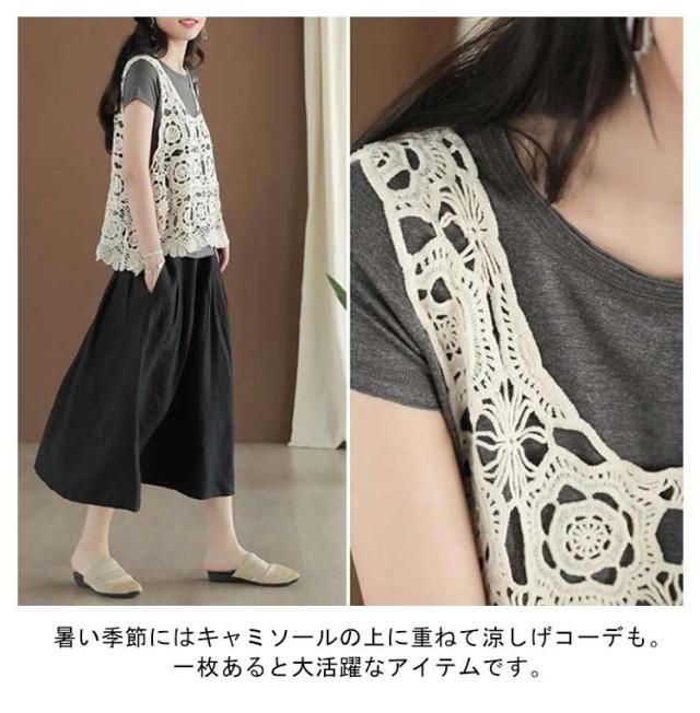 キャミソール 編み おしゃれ サマーベスト レディース ショート丈 ベスト ニット トップス 体型カバー プルオーバー ベスト ノースリーブ ジレ サマーベスト 春 夏 重ね着 オフィス カジュアル 花柄 可愛い タンクトップ プルオーバー Vネック かぎ編み