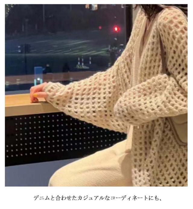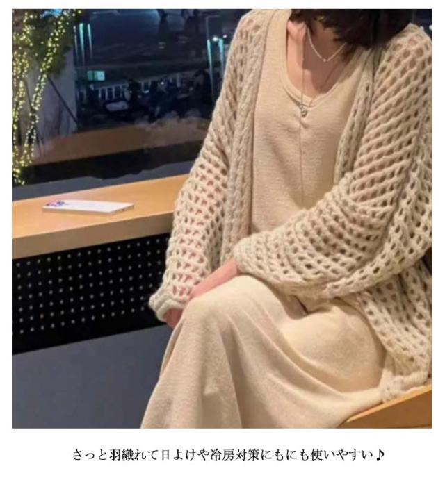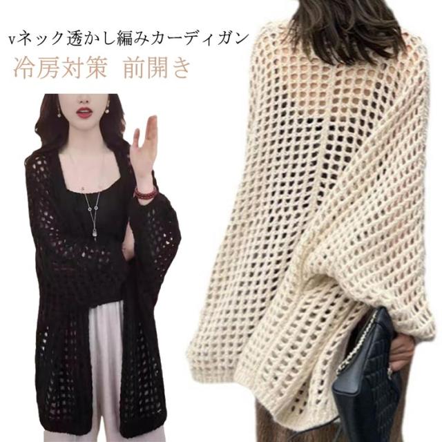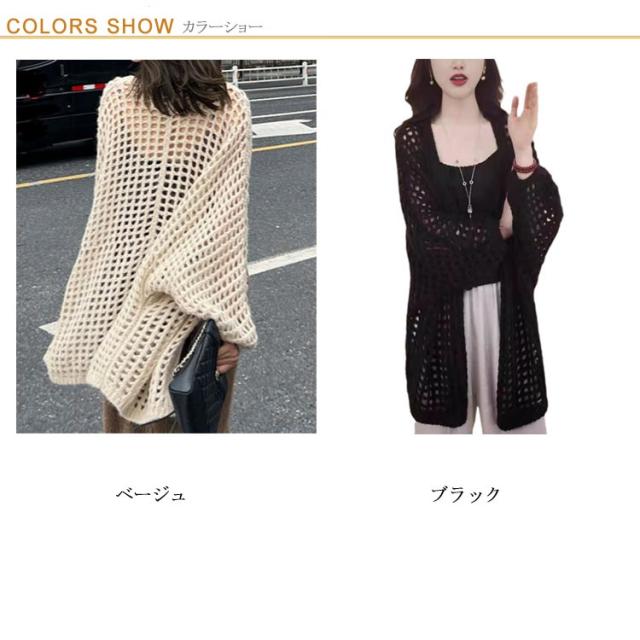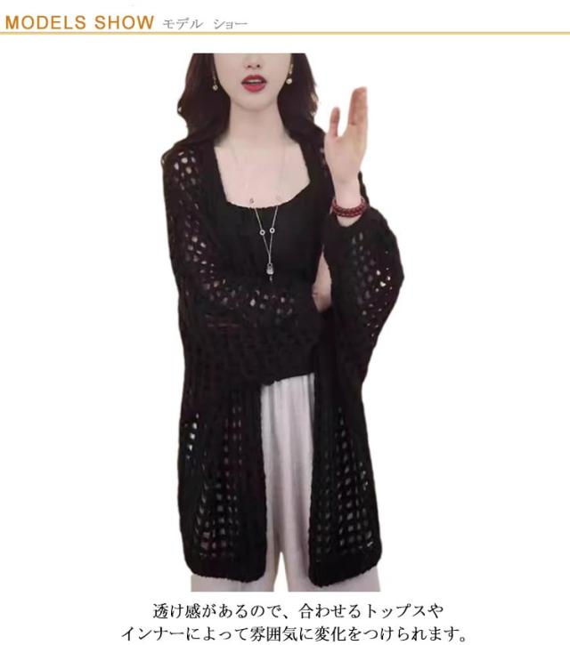 透かし編み 透かし編みカーディガン 透かし編みカーディガン丈長め カーディガン 前開き レディース ゆったり かぎ編み 冷房対策 カーデ アウター おしゃれ 羽織り 羽織り 透かし編みカーディガン丈長め 夏 春 透け感 vネック ベージュ ブラック