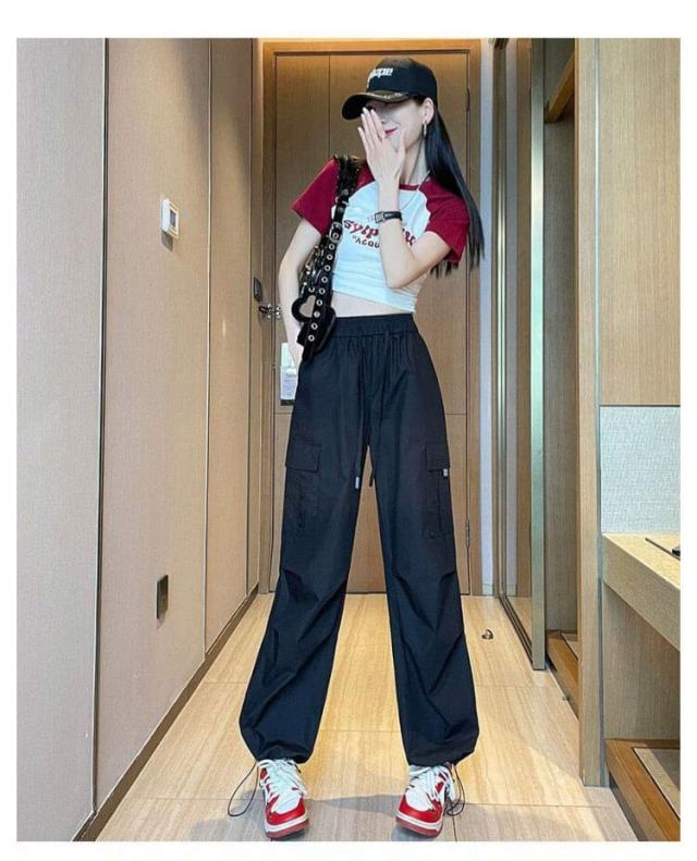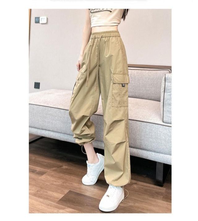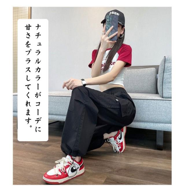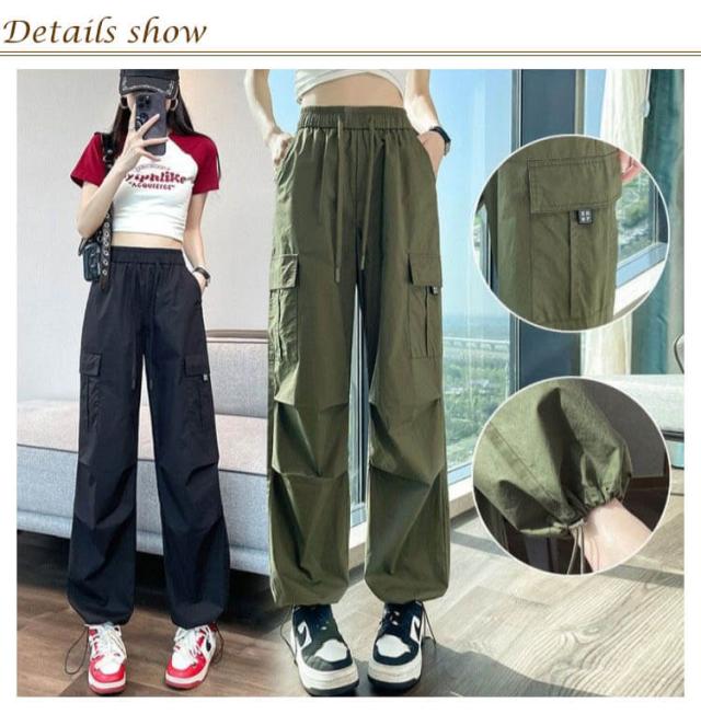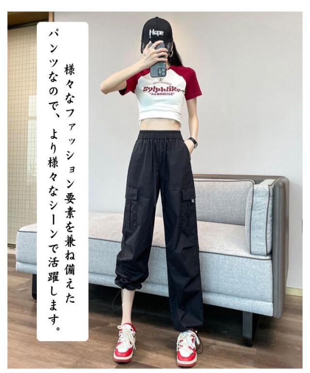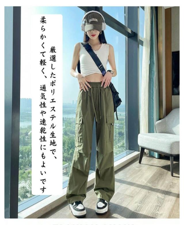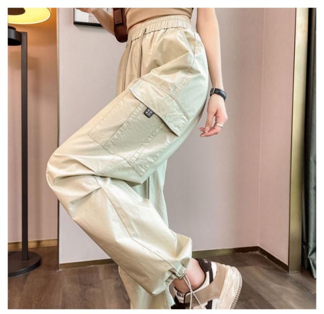 カジュアル ロングパンツ ワイド カーゴパンツ 薄手 パンツ 春 秋 夏 シンプル ボトムス ズボン ゆったり 無地 ウエストゴム ダンス用 動きやすい 女性用 カーゴパンツ かっこいい