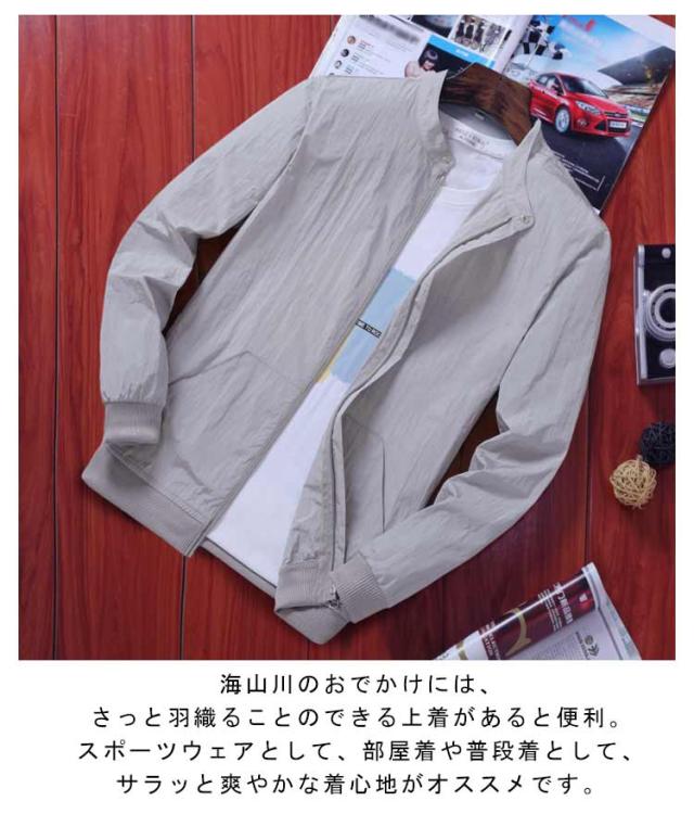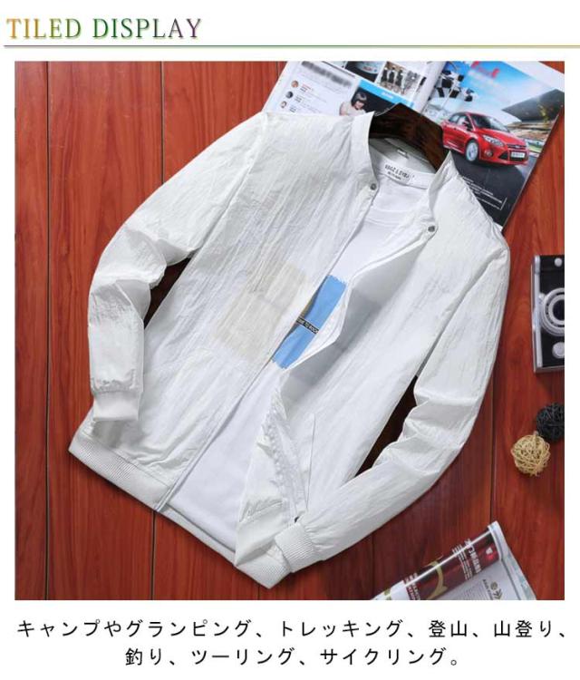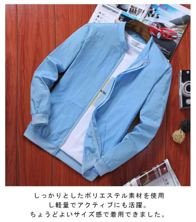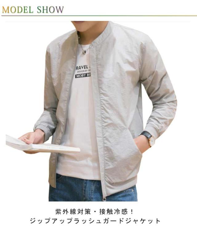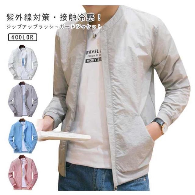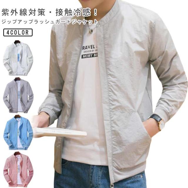 ラッシュガード 吸汗速乾 ブルゾン 日焼け防止 ひんやり 夏用 ジップアップ メンズ 紫外線対策 無地 ジャケット 接触冷感 スタジャン ジャケット 薄手 軽量 ジャンパー 冷房対策 ラッシュガード アウトドア 長袖 スタンドカラー 大きいサイズ カジュアル