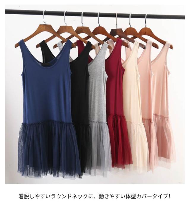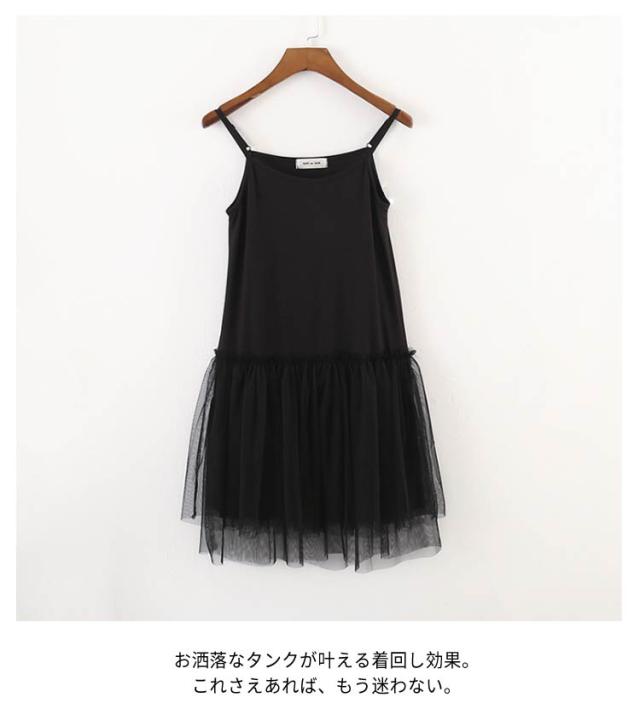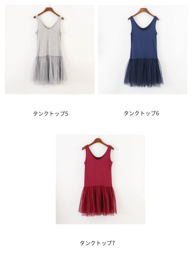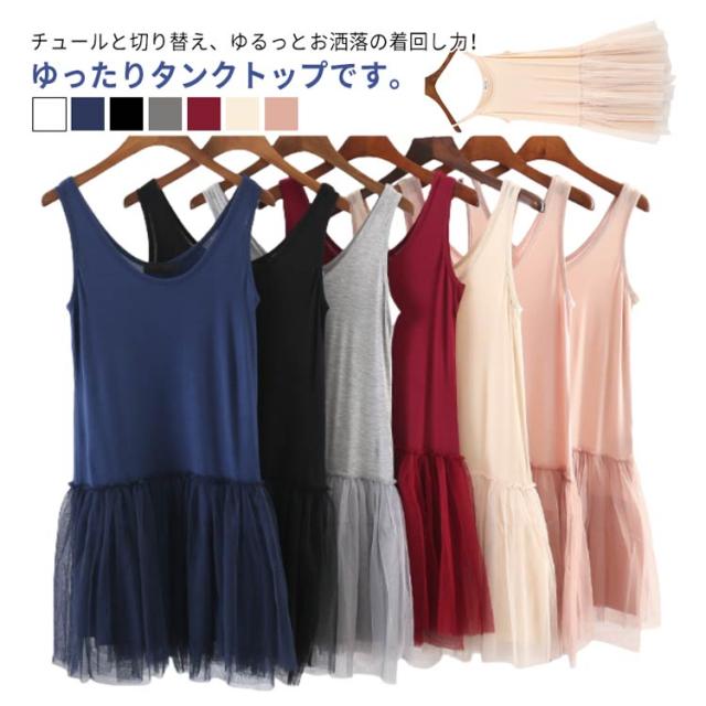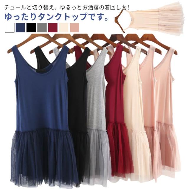切り替え ロング 2タイプ キャミソール タンクトップ 2タイプ レイヤード レディース タンクトップ チュニック ノースリーブ チュールタンクトップ キャミワンピース レイヤードトップス