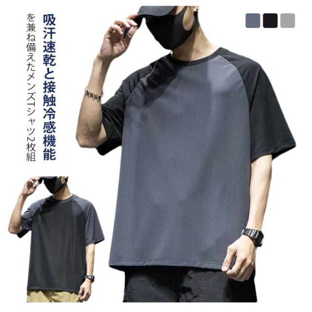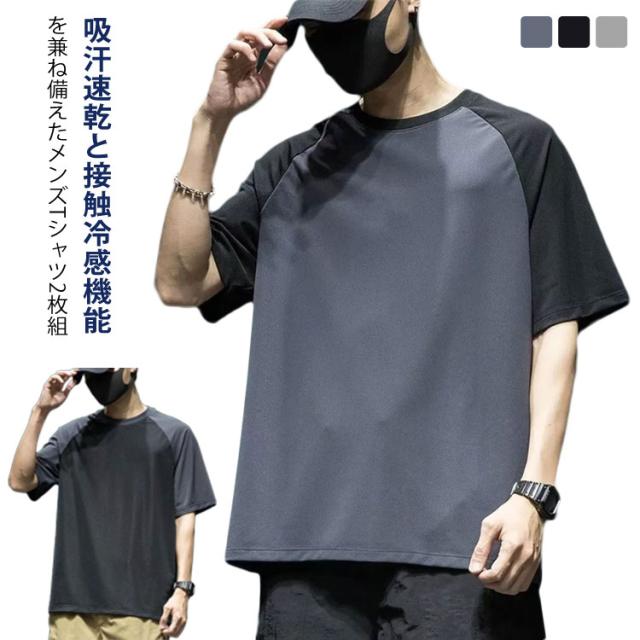 2枚セット 半袖カットソー tシャツ メッシュ 無地 半袖tシャツ 速乾tシャツ 速乾 冷感 吸汗速乾 接触冷感 メンズ 速乾 送料無料 ドライ ひんやり 涼しい スポーツウェア ルームウェア クルーネック