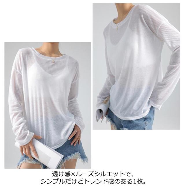 レイヤード Tシャツ 長袖 シアートップス tシャツ 透け感 ゆったり シアートップス トップス シアー 春 シースルー ロンt レディース プルオーバー クルーネック 長袖tシャツ 夏 無地 大きいサイズ 体型カバー 柔らかい
