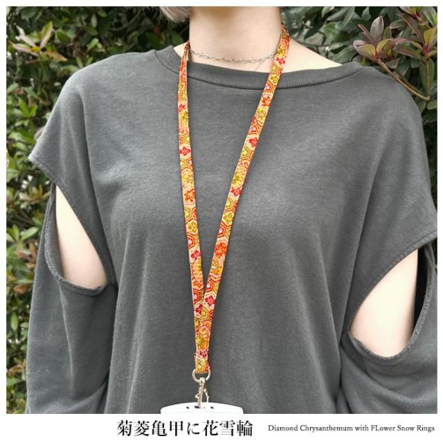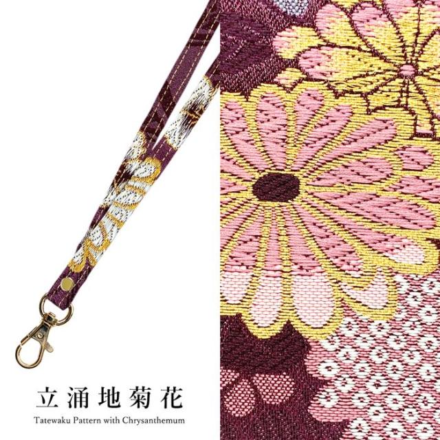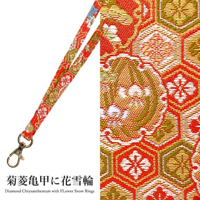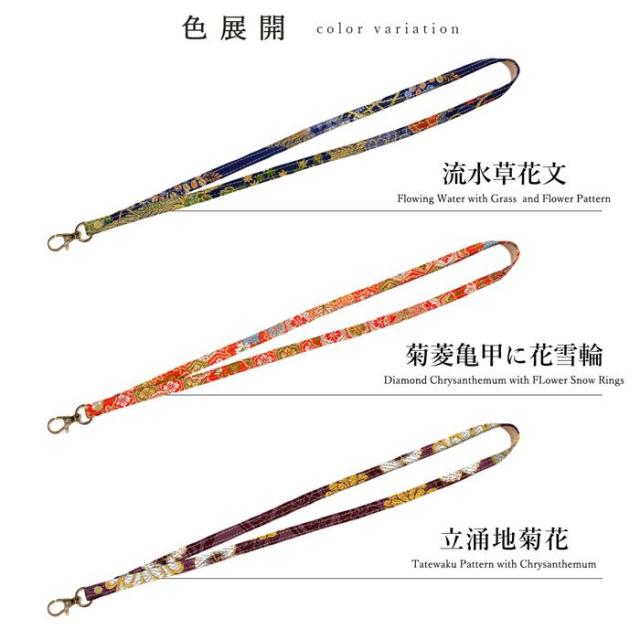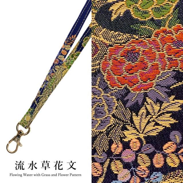 ネックストラップ ロングストラップ レディース 着物 織物 刺繍 和柄 西陣織 明 首掛け 首紐 落下防止 ネックホルダー IDカードホルダー