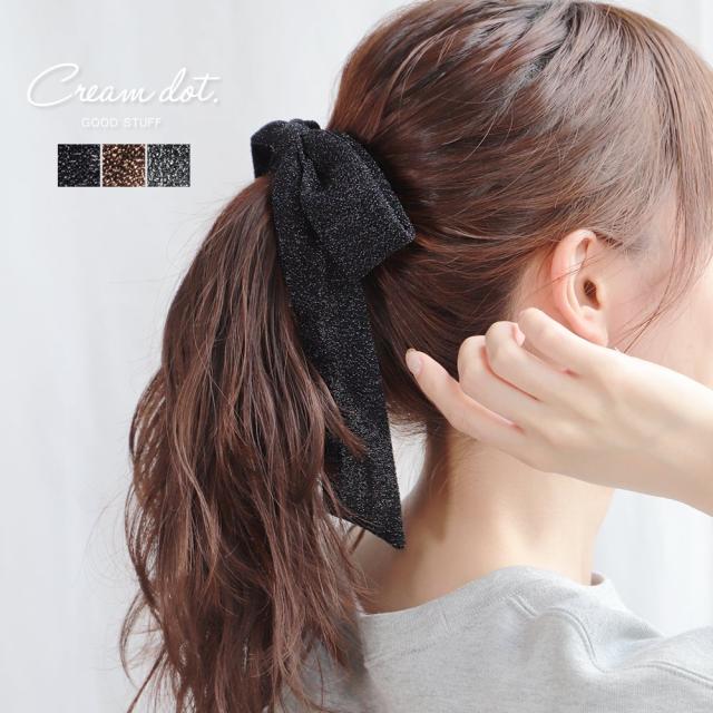 【ゆうパケット送料無料】ポニーフック ヘアフック ヘアカフス ヘアゴム リボン グリッター ラメ ロング 長め 立体 ボリューム 大人っぽい おしゃれ ヘアアクセサリー 髪留め まとめ髪 大人 ブラック ブラウン グレー