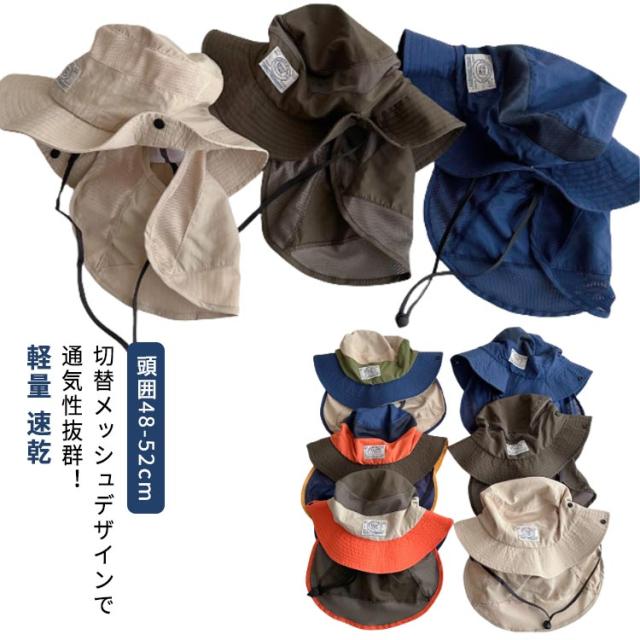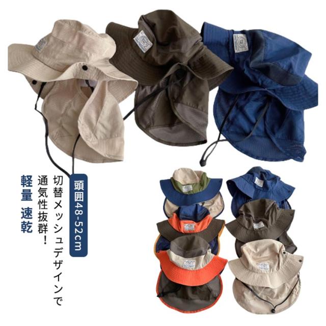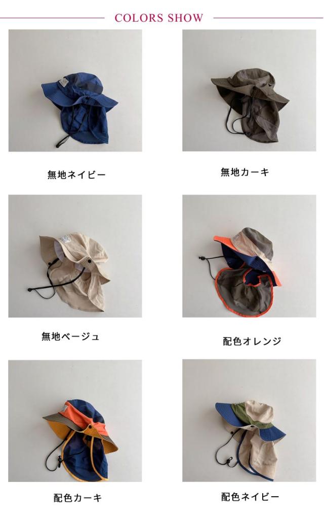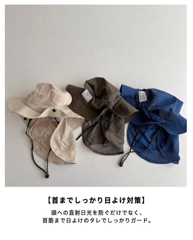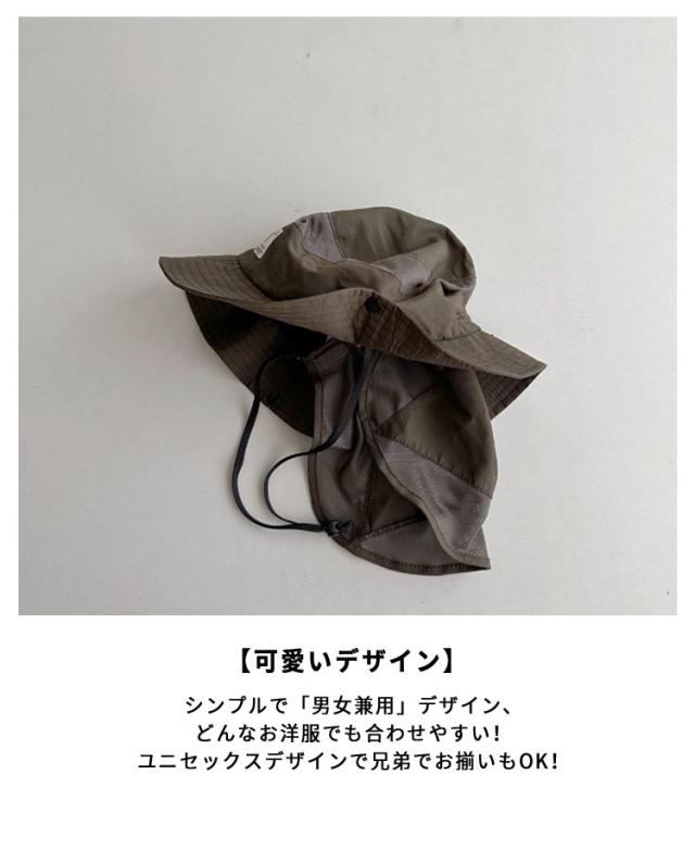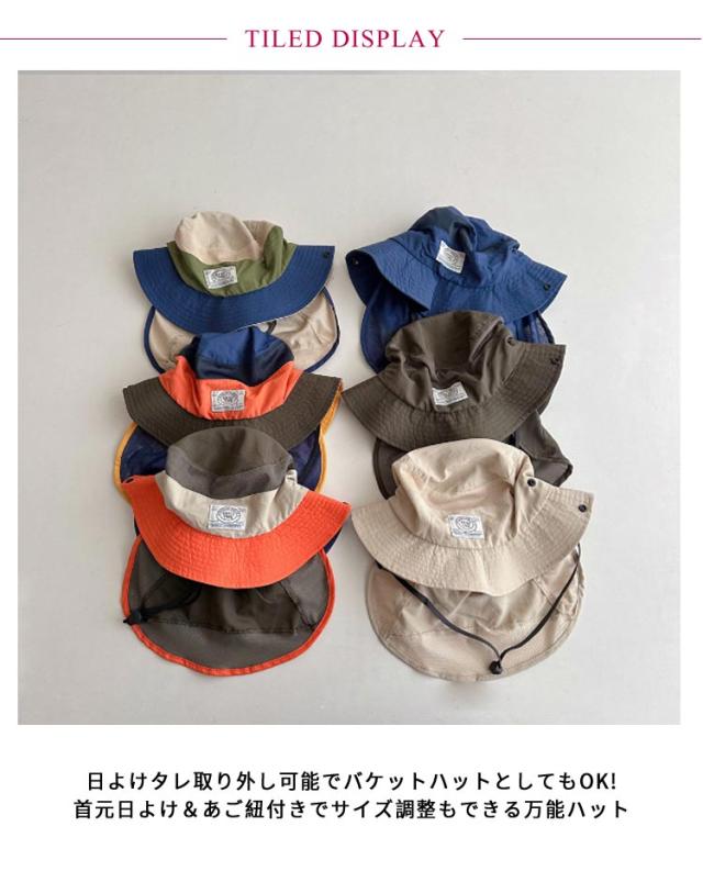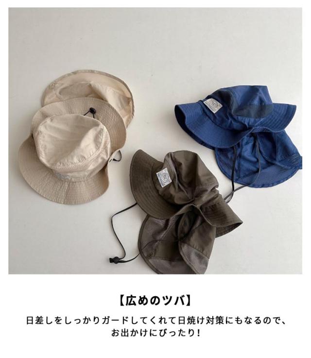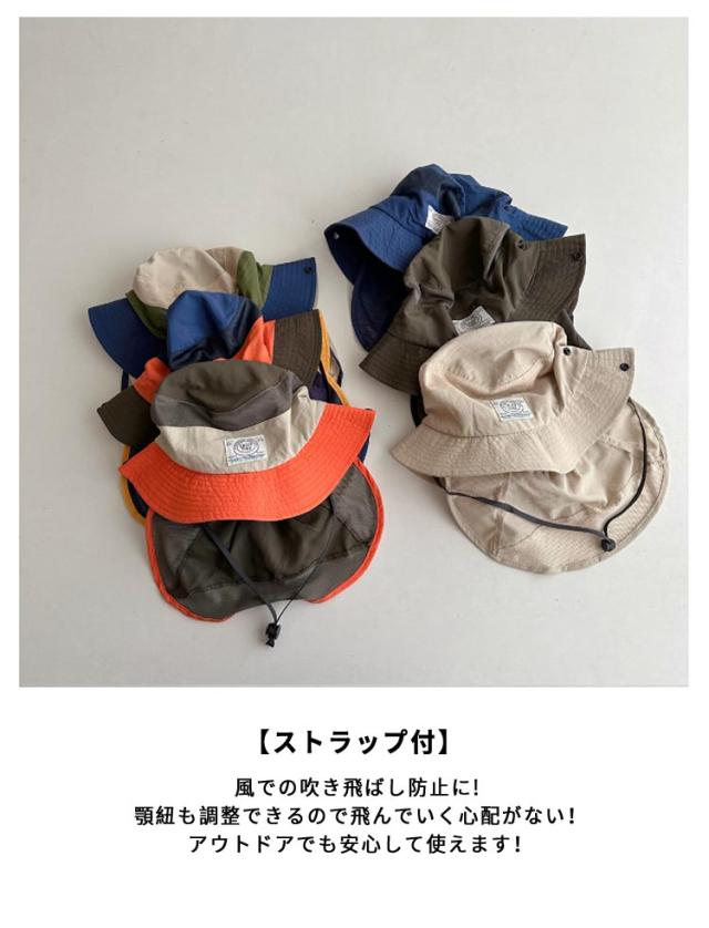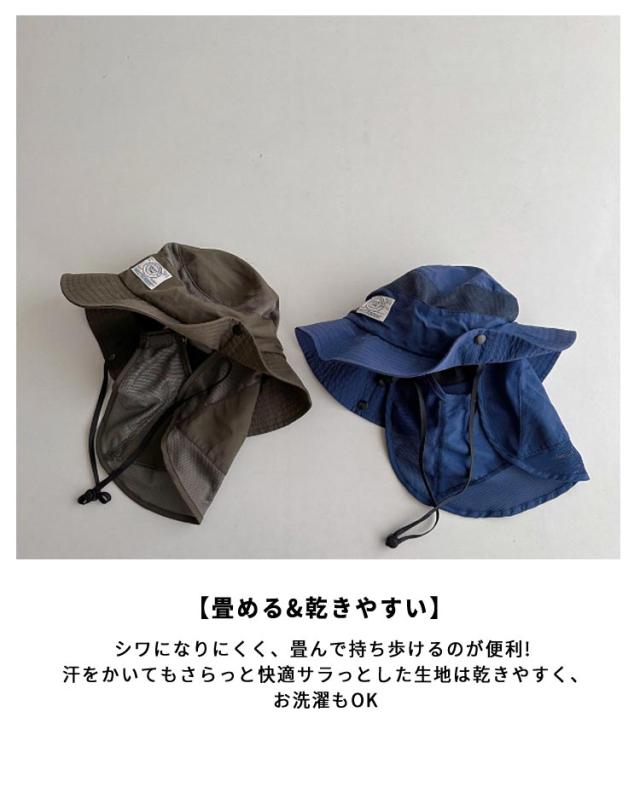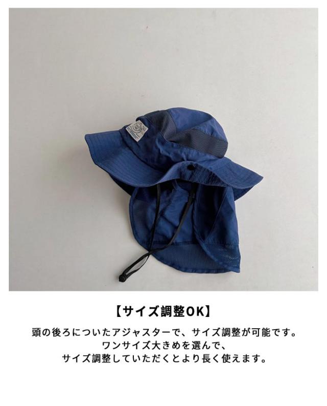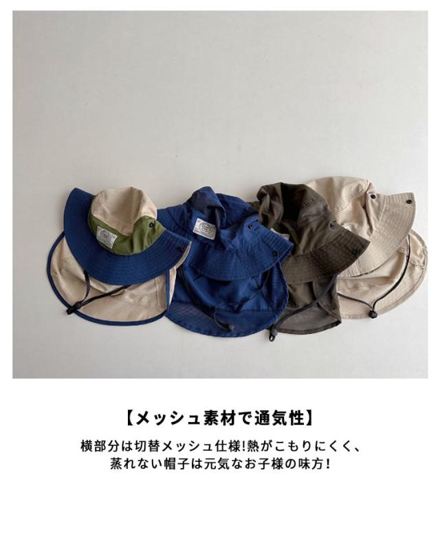 | 切替メッシュデザインで通気性抜群! 軽量 速乾 頭囲48-52cm 日よけタレ取り外し可能でバケットハットとしてもOK! 首元日よけ&あご紐付きでサイズ調整もできる万能ハット 【ストラップ付】風での吹き飛ばし防止に! 顎紐も調整できるので飛んでいく心配がない!アウトドアでも安心して使えます! 【広めのツバ】日差しをしっかりガードしてくれて日焼け対策にもなるので、お出かけにびったり! 【首までしっかり日よけ対策】頭への直射日光を防ぐだけでなく、首筋まで日よけのタレでしっかりガード。子どもの首筋は皮膚が薄く、日焼けをするとジリジリ痛くなる部分。日よけで首の後ろを覆うことで、うっかり焼けを防止しながら熱中症対策も叶います。また、日よけタレはボタンで簡単に取り外しができるので、季節によって着脱して使い分けも。 【畳める&乾きやすい】シワになりにくく、畳んで持ち歩けるのが便利! 汗をかいてもさらっと快適♪ サラっとした生地は乾きやすく、お洗濯もOK◎ 【メッシュ素材で通気性◎】横部分は切替メッシュ仕様!熱がこもりにくく、蒸れない帽子は元気なお子様の味方! 【サイズ調整OK】頭の後ろについたアジャスターで、サイズ調整が可能です。ワンサイズ大きめを選んで、サイズ調整していただくとより長く使えます。 【可愛いデザイン】シンプルで「男女兼用」デザイン、どんなお洋服でも合わせやすい!ユニセックスデザインで兄弟でお揃いもOK! | |