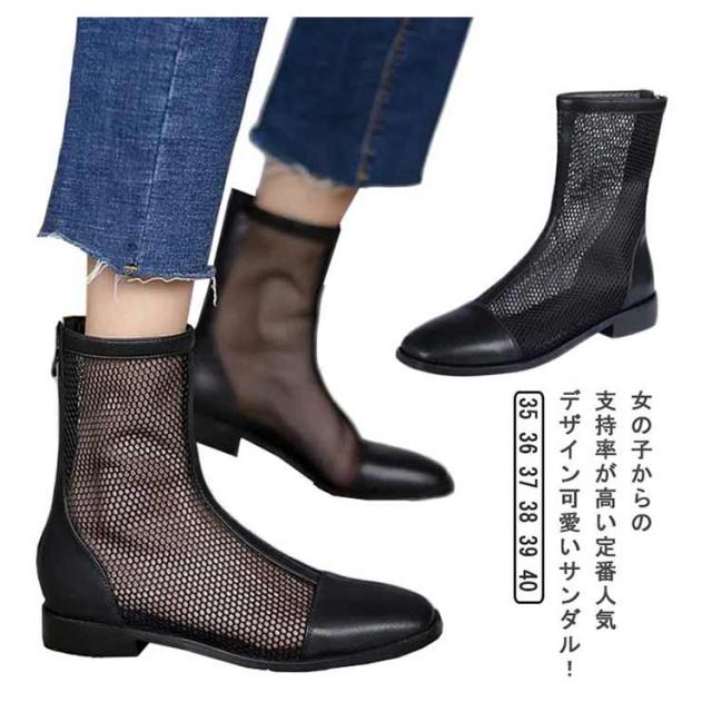 ショートブーツ 美脚 メッシュブーツ メッシュ シースルー ローヒール シアー シューズ 透け感 痛くない レディース 歩きやすい 疲れない カジュアル 軽い 軽量 サマーブーツ バックジッパー フェミニン きれいめ サマーブーツ シンプル 春夏 通勤 通学 春 夏 秋