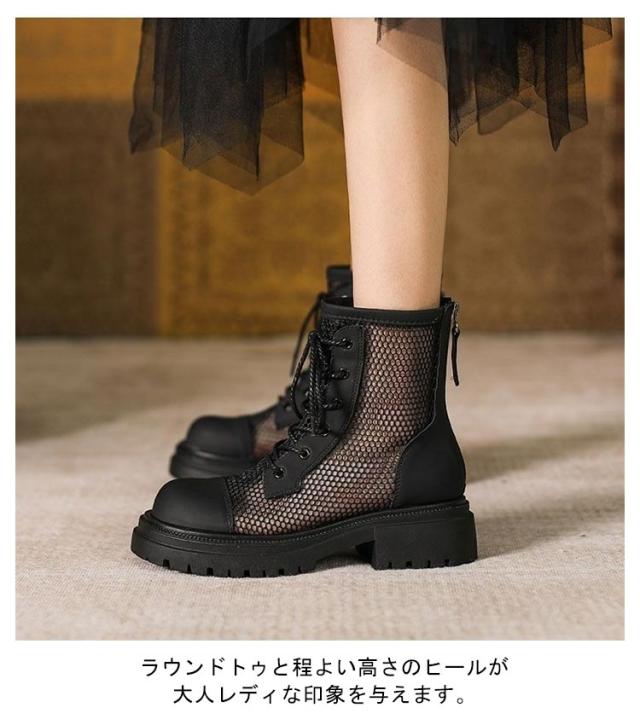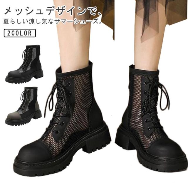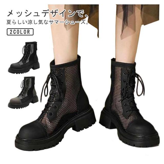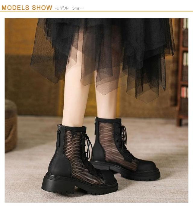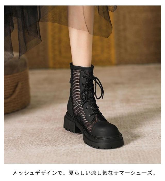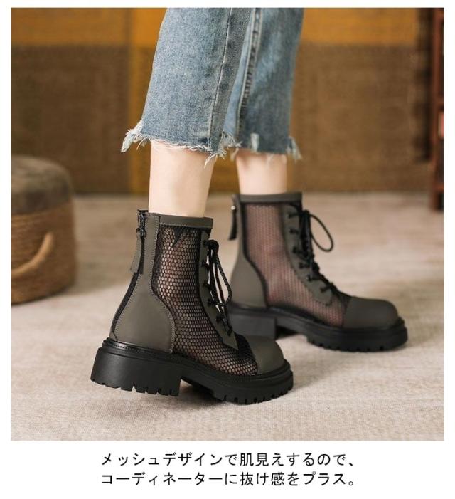 レディース サンダル メッシュブーツ ブーツサンダル 太ヒール メッシュ サマーブーツ 通気性 メッシュブーツ 美脚サンダル パンプス ローヒール レディースブーツ 疲れない 歩きやすい 蒸れない ショートブーツ 軽量 春夏 バックジッパー 夏 パンプス
