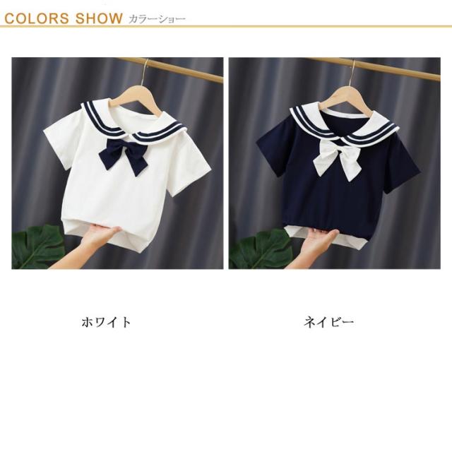 セーラー 白 マリン 男の子 リンクコーデ ベビー キッズ 女の子 トップス 半袖 ユニセックス セーラーカラー キッズ リボン ブラウス トップス セーラー ホワイト ネイビー 紺 女の子 Tシャツ キッズ 子ども カラーTシャツ 子供服 こども セーラー襟 かわいい tシャツ