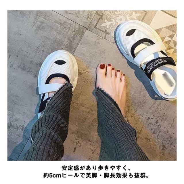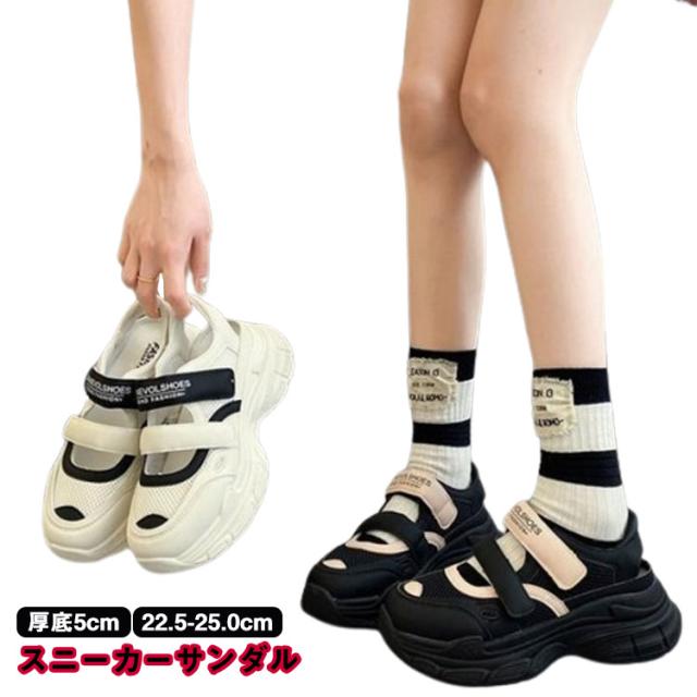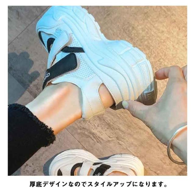 | 【スニーカーサンダル】【厚底5cm】【22.5-25.0cm】 トレンドのボリュームのあるデザイン。 2本のマジックテープが付いているので調節できます。 厚底デザインなのでスタイルアップになります。 カラーソックスで合わせても裸足で履いてもオススメです。 脚が美しく見える絶妙なフラットソールに設定。 安定感があり歩きやすく、約5cmヒールで美脚・脚長効果も抜群。 スポーティなデザインなのでカジュアルコーデに相性抜群、 フェミニンアイテムと合わせて甘さをDownして甘辛コーデも楽しめる | |