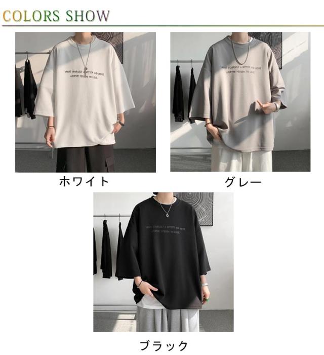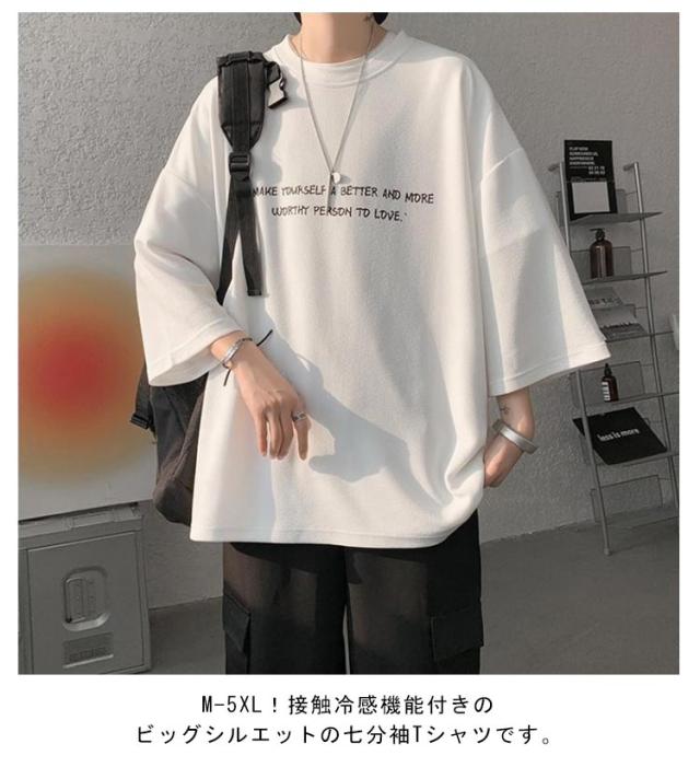 ルーズ カッコイイ オーバーサイズ シルエット ビッグT Tシャツ 7分袖 メンズ 無地 夏服 ゆったり 体型カバー 韓国ファッション 涼しい カジュアル おしゃれ Tシャツ 大きいサイズ 夏 春夏 涼しい 半袖 ビッグ 大人 男性 トップス プレゼント