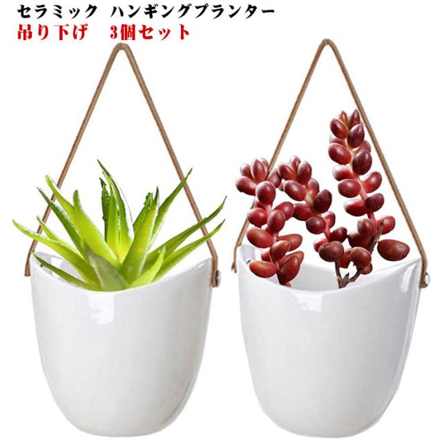 ハンギングバスケット 3個セット 吊り下げ 屋内 ポット ハンギングプランター 屋外 ハンギングプランター 吊り鉢 セラミック 鉢 北欧 シンプル ガーデニング 観葉植物