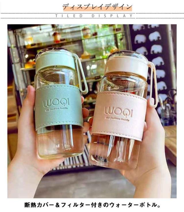 耐冷 直飲み 女子 耐熱ガラス 透明 ウォーターボトル ウォーター 茶こし付き おしゃれ ボトル 子供 キッズ かわいい 漏れ防止 携帯便利 大人 可愛い シンプル ウォーターボトル ドリンクボトル フィルター付き 断熱カバー付き