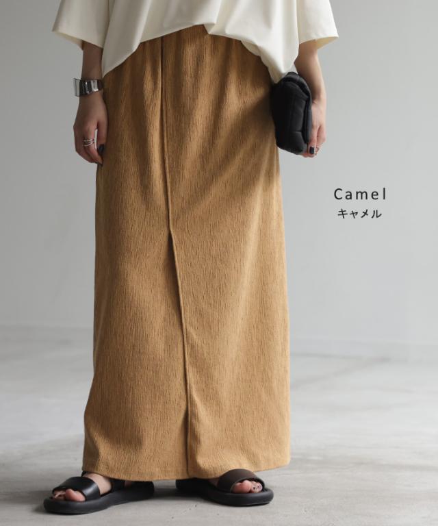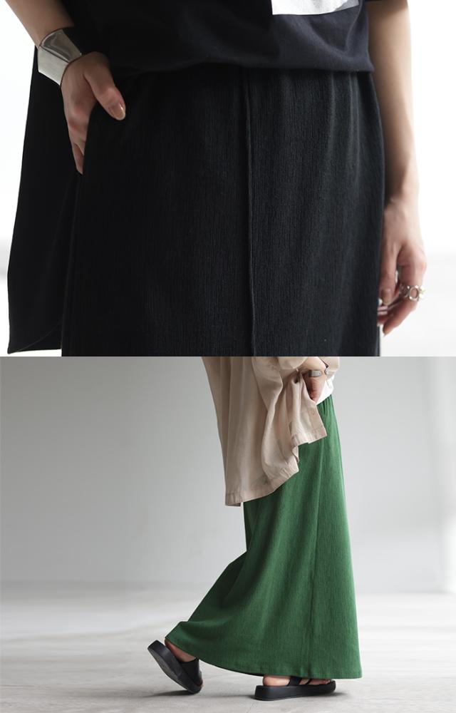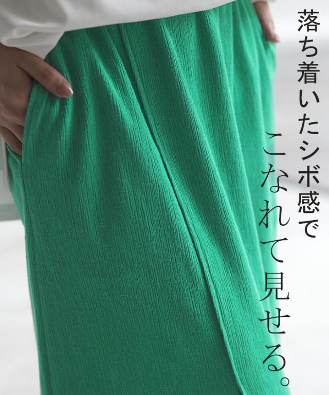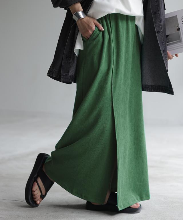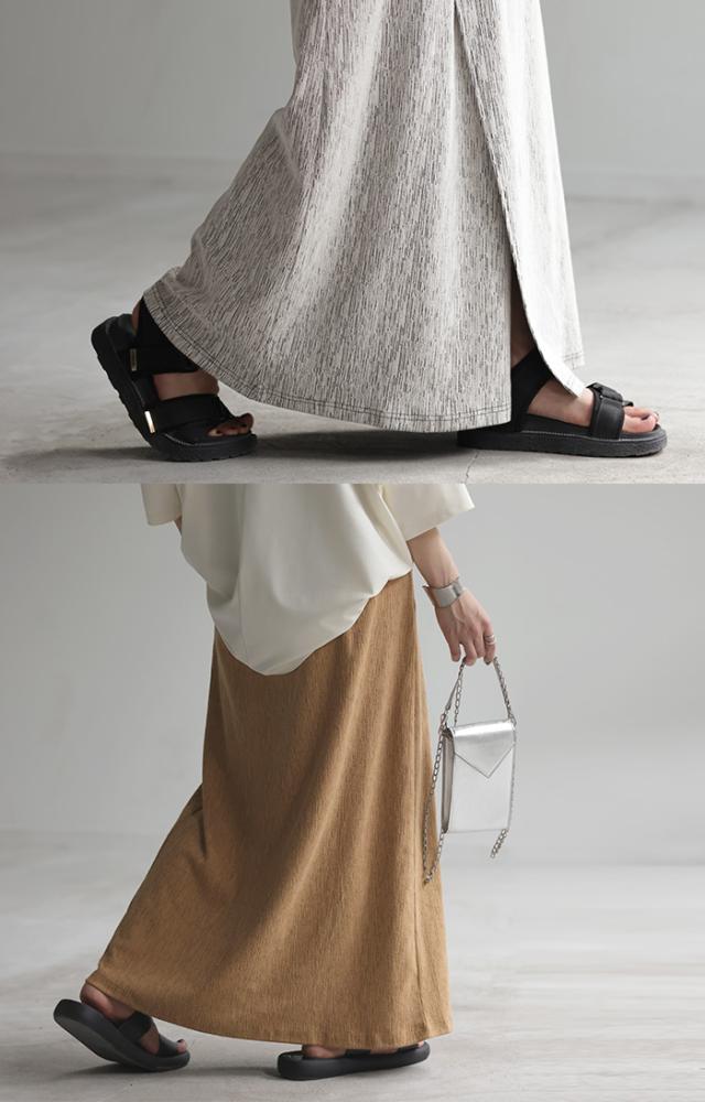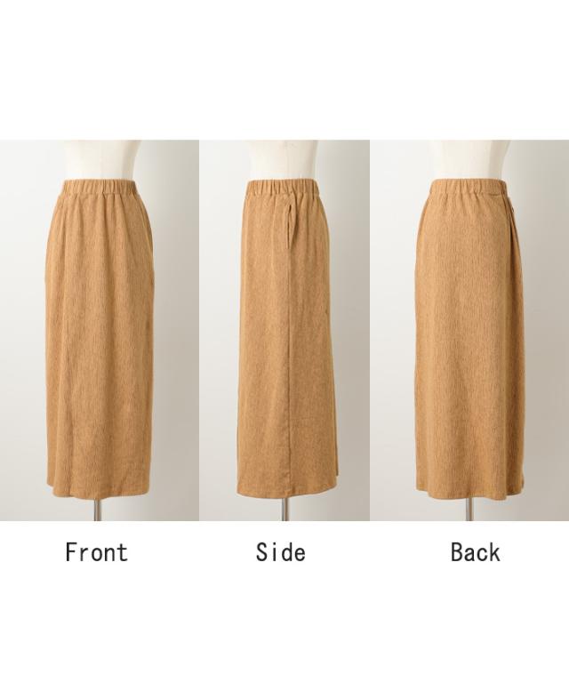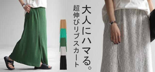 細かなリブデザインが縦ラインを強調し、すっきりした印象のスカートです。