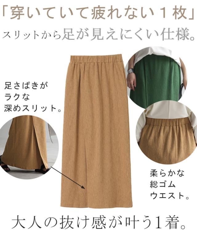 マキシスカート ロング ロングスカート タイト タイトスカート 走れる 動ける Iライン ペンシル ペンシルスカート イージースカート イージー イージー素材 ロング丈 Iラインスカート ストレスフリー ロング丈スカート ロング丈タイトスカート タイトロングスカート マキシ マキシ丈 マキシ丈スカート きれい キレイ キレイめ 薄手 薄目 薄め 薄い 膝下 ひざ下 細見え 着やせ 着痩せ ゴムウエスト ゴムウェスト ウエストゴム ウェストゴム ゴム ウエスト ウェスト センタースリット センタースリットスカート フロントスリット スリットスカート ラクチン らくちん 楽ちん 楽 動きやすい ゆったり ゆる ゆったりサイズ ゆるカジ ゆるい ゆるファッション 伸縮性 伸びる ブラック 黒 黒色 ホワイト 白 白色 グリーン 緑 緑色 モスグリーン ライトグリーン モスグリーン 深緑 黄緑 黄緑色 ブラウン モカ 茶 茶色 キャメル ライトブラウン 綿 コットン 綿混 フリーサイズ フリー S M L LL 2L XL 3L XXL LLL 体型カバー 着痩せ 着回し お尻が隠れる 大きい 大き目 プラスサイズ カジュアル ナチュラル 大人カジュアル レディースファッション ベーシック オフィス オフィスカジュアル テレワーク リモートワーク リモート オンライン飲み会 韓国ファッション 韓国風 韓国 ストリート おうち時間 お家時間 デート お出かけ フェス リゾート ビーチ 海 旅行 飛行機 パーティー パーティ 着回し 母の日 プレゼント ギフト 贈り物 クリスマス シンプル 大人 オトナ 大人カジュアル オフィスカジュアル オフィス レディースファッション 女性 綺麗 綺麗目 きれい キレイ キレイめ キレイメ きれいめ 高見え 上質 上品 ゆる ゆったり 旬 トレンド 20代 30代 40代 50代 60代 おしゃれ お洒落 オシャレ 可愛い かわいい カワイイ カッコいい 格好良い カッコイイ 春 夏 秋 冬 春夏 秋冬 HUG.U HUGU ハグユー はぐゆー