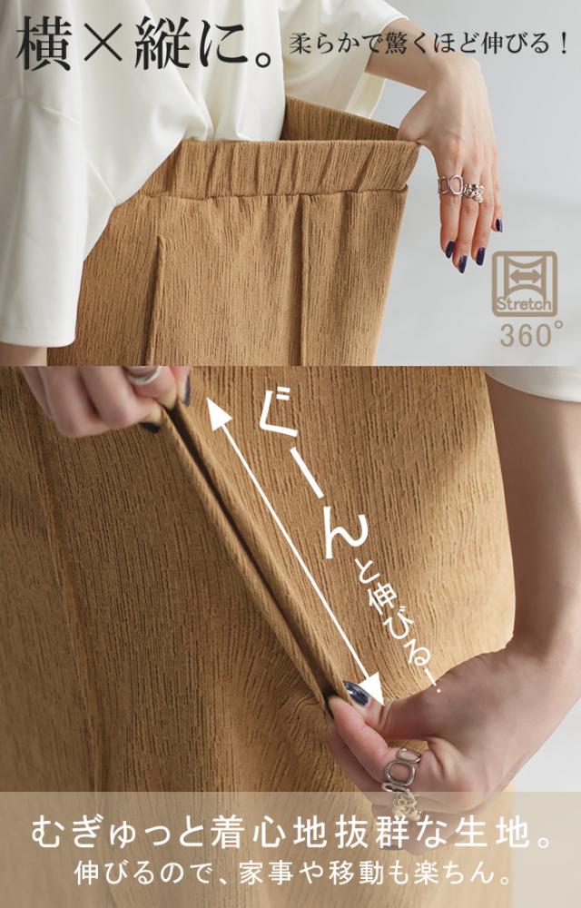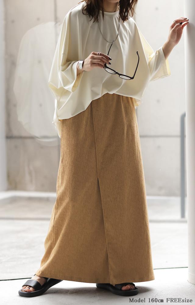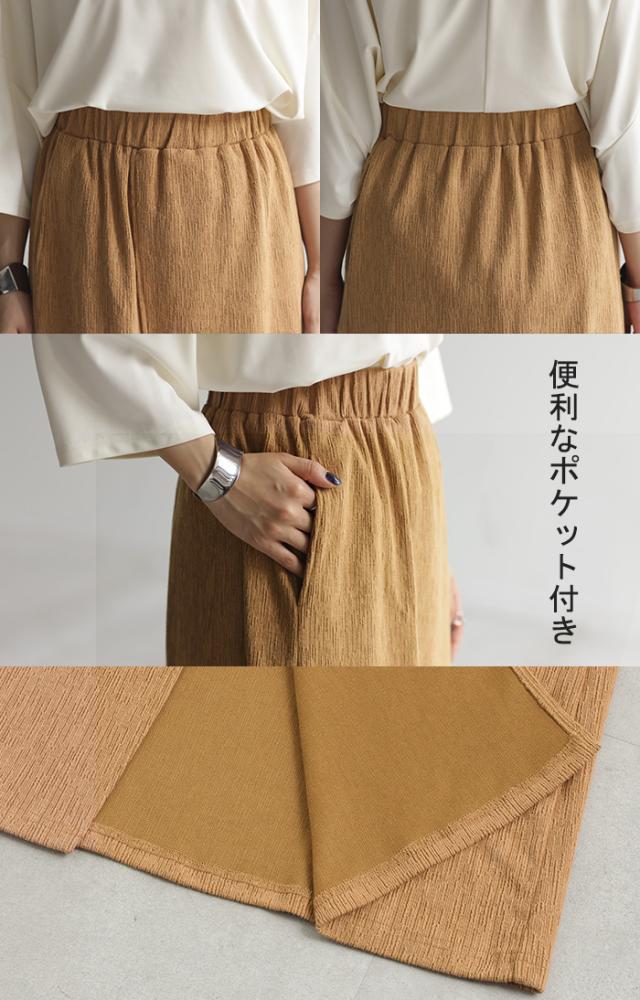 ストレッチ性のある柔らかな生地と程よいサイズ感でスタイリングしやすい万能スカートです。