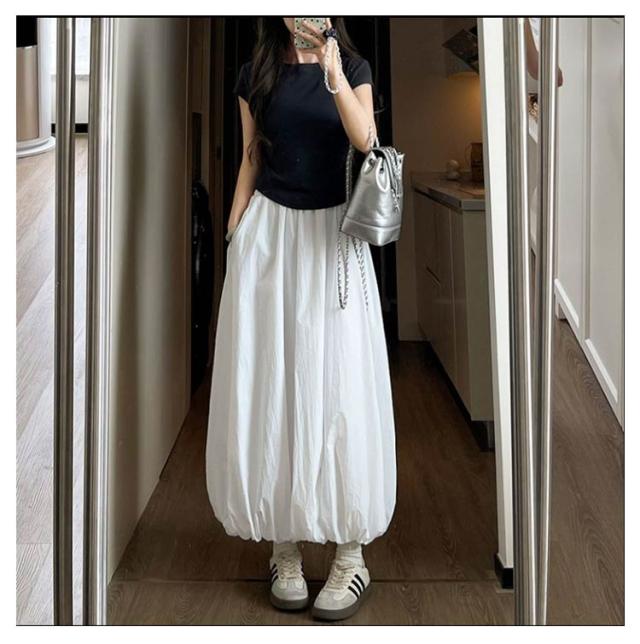 Aライン コクーンスカート スカート 送料無料 バルーン スカート マキシ丈 送料無料 ロング マキシスカート ギャザー入り 夏 大人 体型カバー ハイウェスト ふんわり 着痩せ 通勤 無地 ロングスカート ポケット付き カジュアル S M L