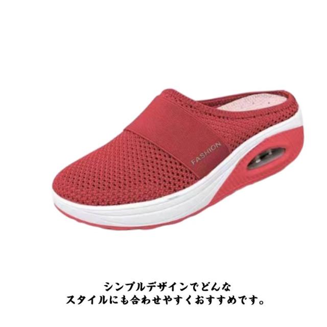 | かかとなしスニーカー エアークッション付き 22.5〜26.5cm 軽量設計、ソールは厚底で衝撃を吸収するエアークッションを搭載。 通気性良いメッシュ素材ー体に成型で、足が蒸れにくいです、外出したい時や、急いで靴を履きたい時などにもサッと履けます 着脱が簡単なので、忙しい朝や移動中でもスムーズに履き替えが可能です。 シンプルデザインでどんなスタイルにも合わせやすくおすすめです。 | |