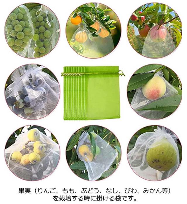 | 8サイズ 果実袋100枚入!果実の生育中に風雨や枝すれ、病虫害から果実を守り、きれいな果実を育てます。 果実(りんご、もも、ぶどう、なし、びわ、みかん等)を栽培する時に掛ける袋です。 入り口が巾着仕様になっており、きゅっと口が閉じられます 細かいメッシュ設計で、小さな虫の侵入を防ぎ、日光や通気性を妨げることなく果実の育成を促進します。 | |