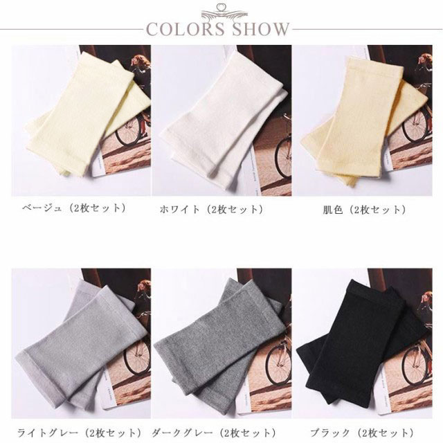 | 色 | ダークグレー(2枚セット) ライトグレー(2枚セット) ホワイト(2枚セット) ベージュ(2枚セット) ブラック(2枚セット) 肌色(2枚セット) |