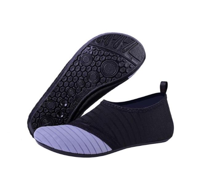 | 水陸両用で使えるマリンシューズ アッパーは伸縮性のある素材を使用しているので、ぴったりとフィットし、まるで素足のような履き心地! アウターソールは滑りにくいゴム製で、岩場などでもしっかりとグリップ インソールにはメッシュ素材を採用して、排水性能と速乾性能を兼ね備えています。 すぐに乾いてムレないので、快適な履き心地となっています。 | |