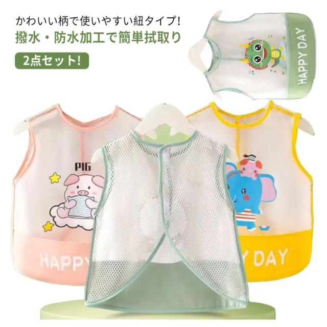 ベビー用エプロン ベビーエプロン 食事用エプロン 袖なし お食事エプロン ノースリーブ ベビー用品 ポケット付き 夏用 スモック 出産祝い ギフト 離乳食 防水 洗濯可 2点セット 食べこぼし防止 防水加工 保育園 赤ちゃん かわいい おしゃれ 幼児